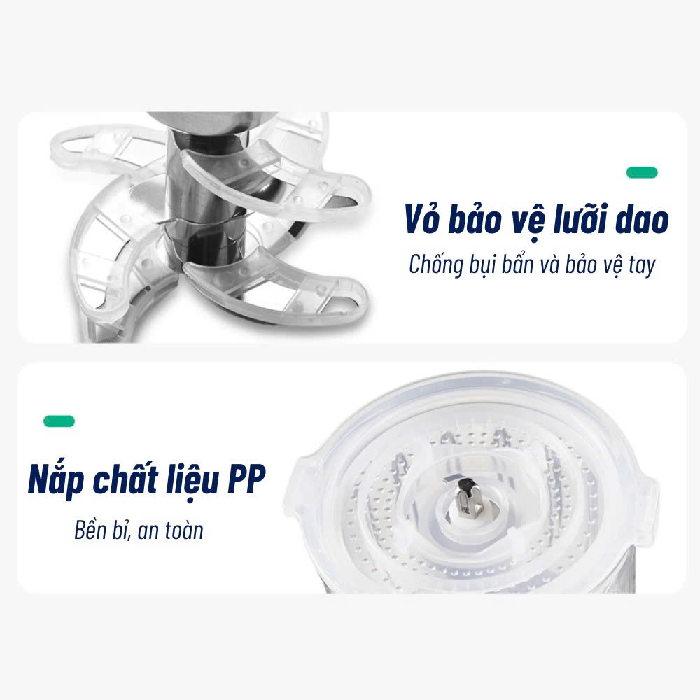 Dung tích: 2L Công suất: 250W Nguồn điện : 220v- 50Hz Vỏ máy: Chất liệu Inox 304 cao cấp, chịu nhiệt Lưỡi dao: Thiết kế 4 lưỡi bằng thép không gỉ – Sắc bén cho