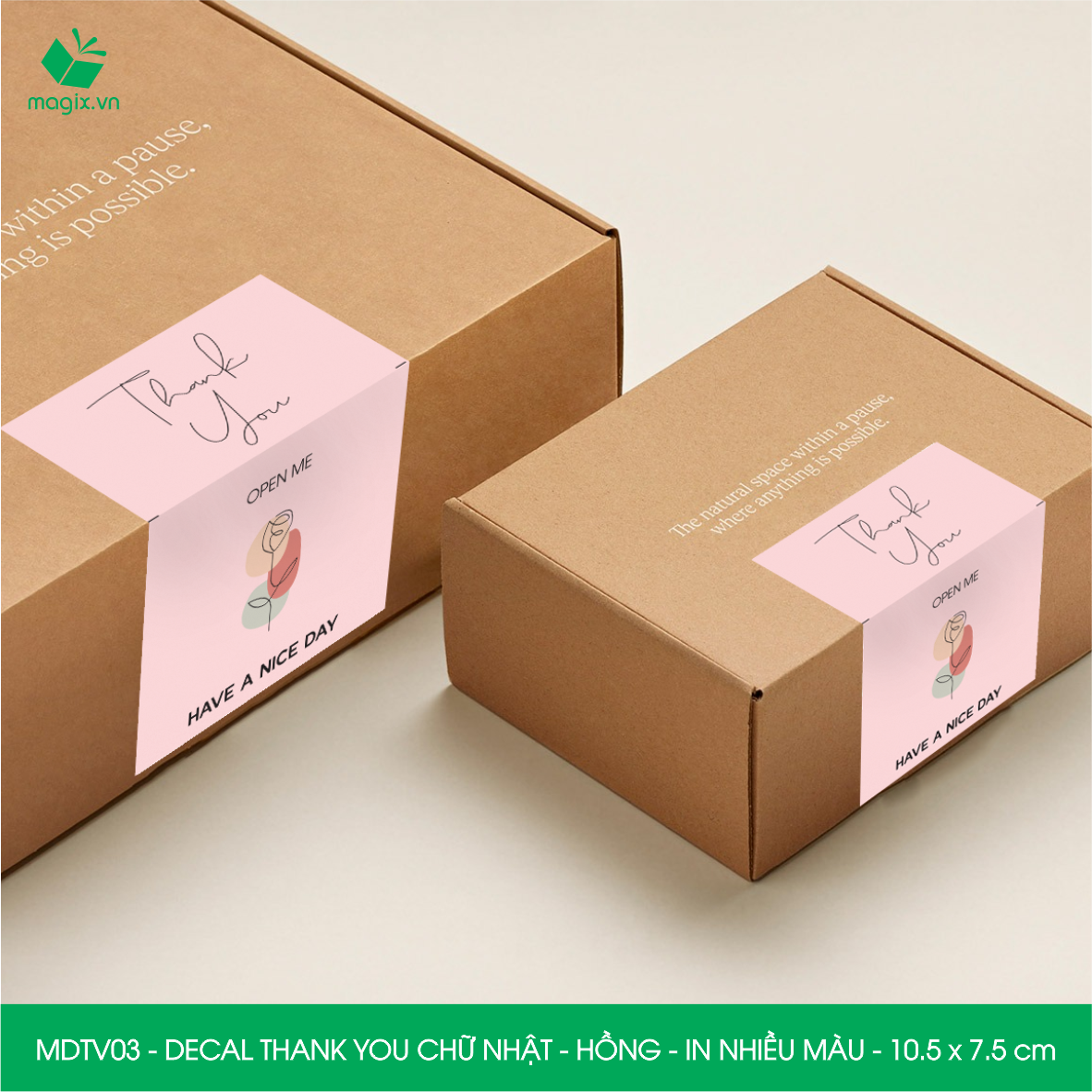 ✨MDTV03 - 10.5x7.5 cm - 1000 Decal Thank you hình chữ nhật dán hộp carton, Label Thank you, tem nhãn cảm ơn có sẵn keo dán niêm phong gói hàng
