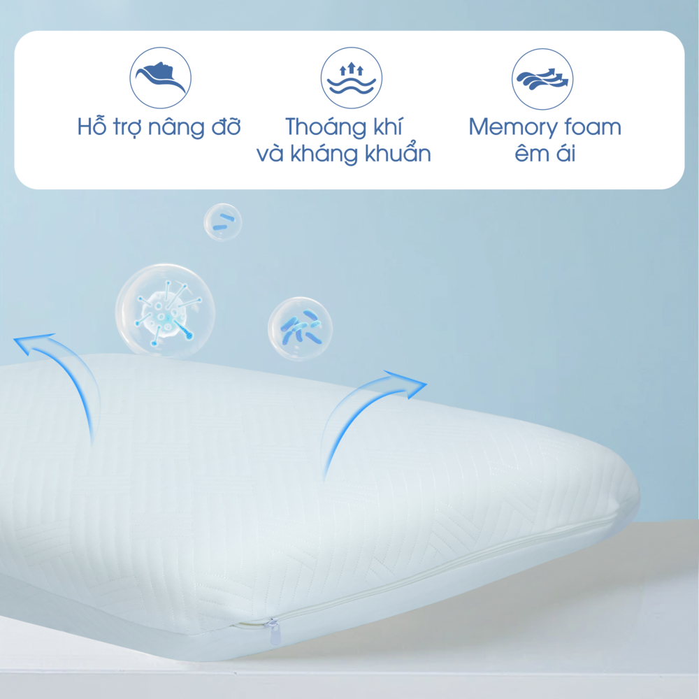 Chạm Là Mê – Mềm Mại, Thoáng Khí, Ngủ Là Say Trải nghiệm cảm giác êm ái – mát lạnh – thư giãn tuyệt đối với ruột gối mátxa thấp, được thiết kế đặc biệt