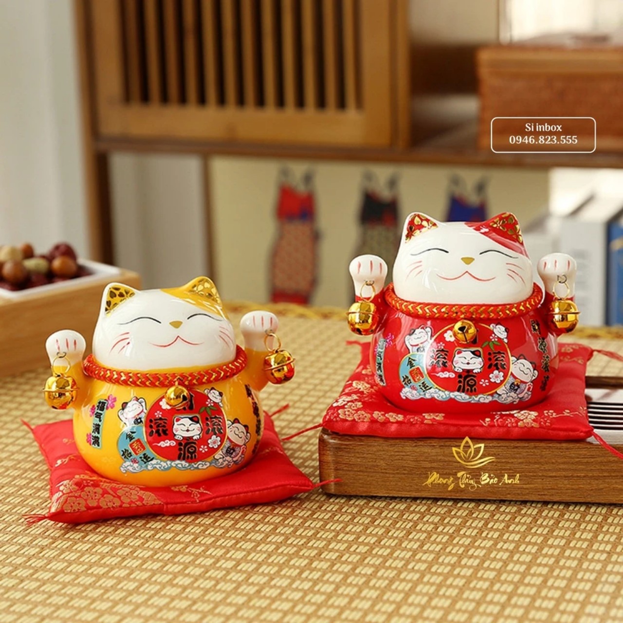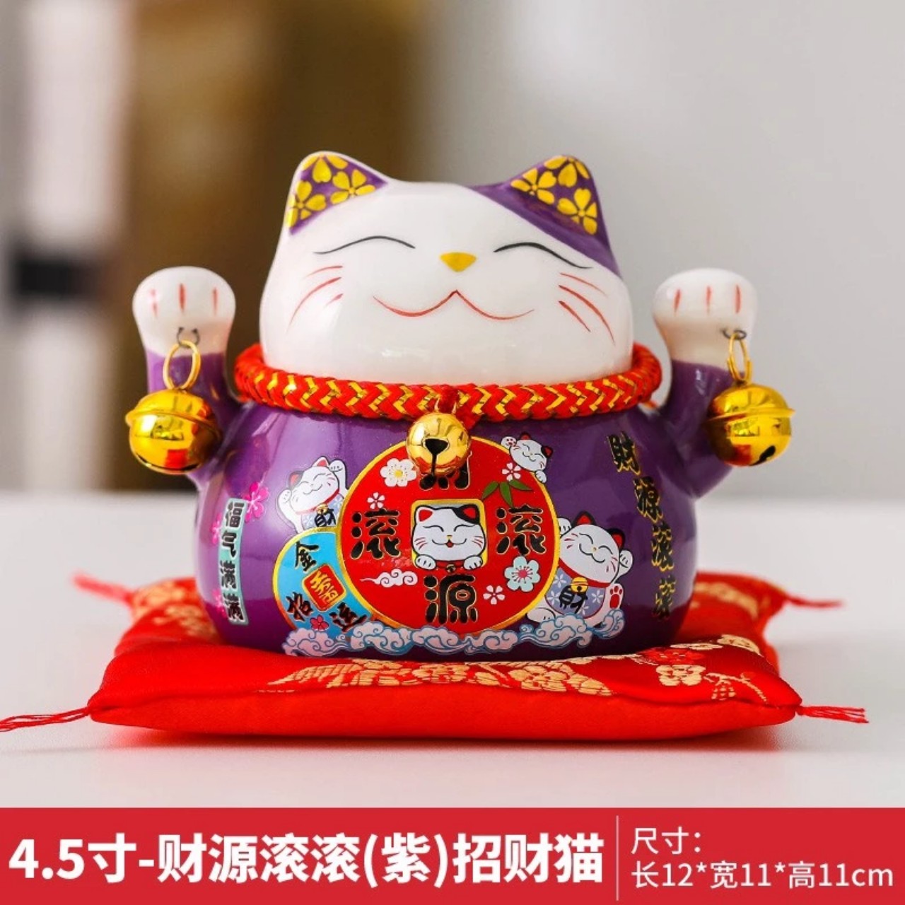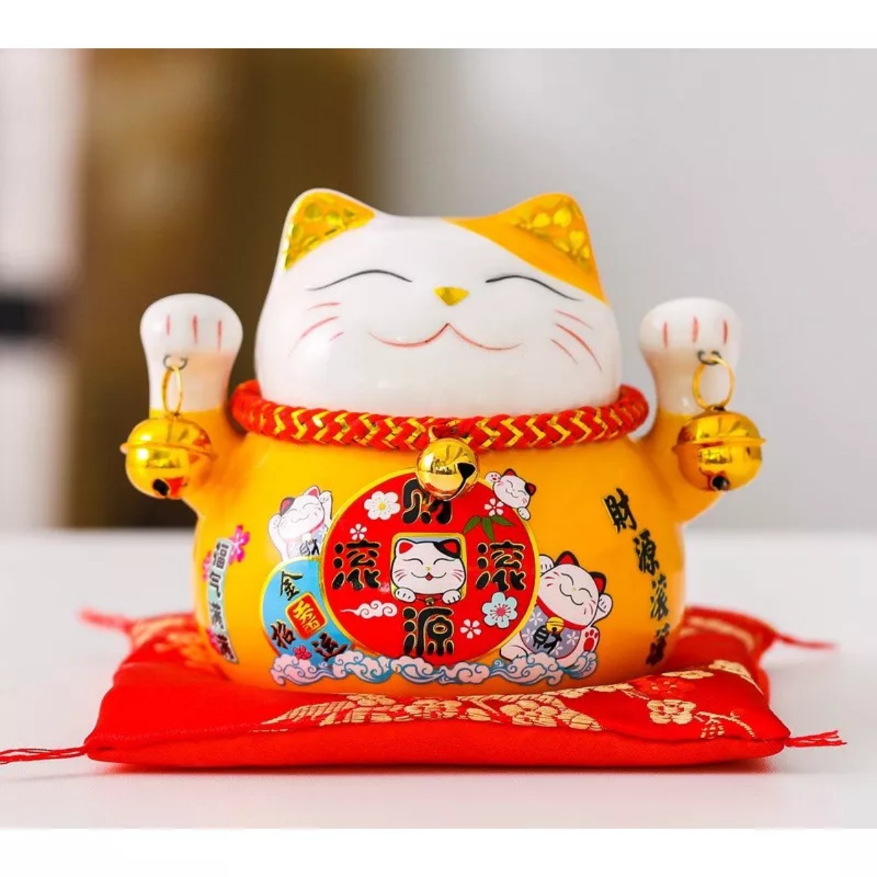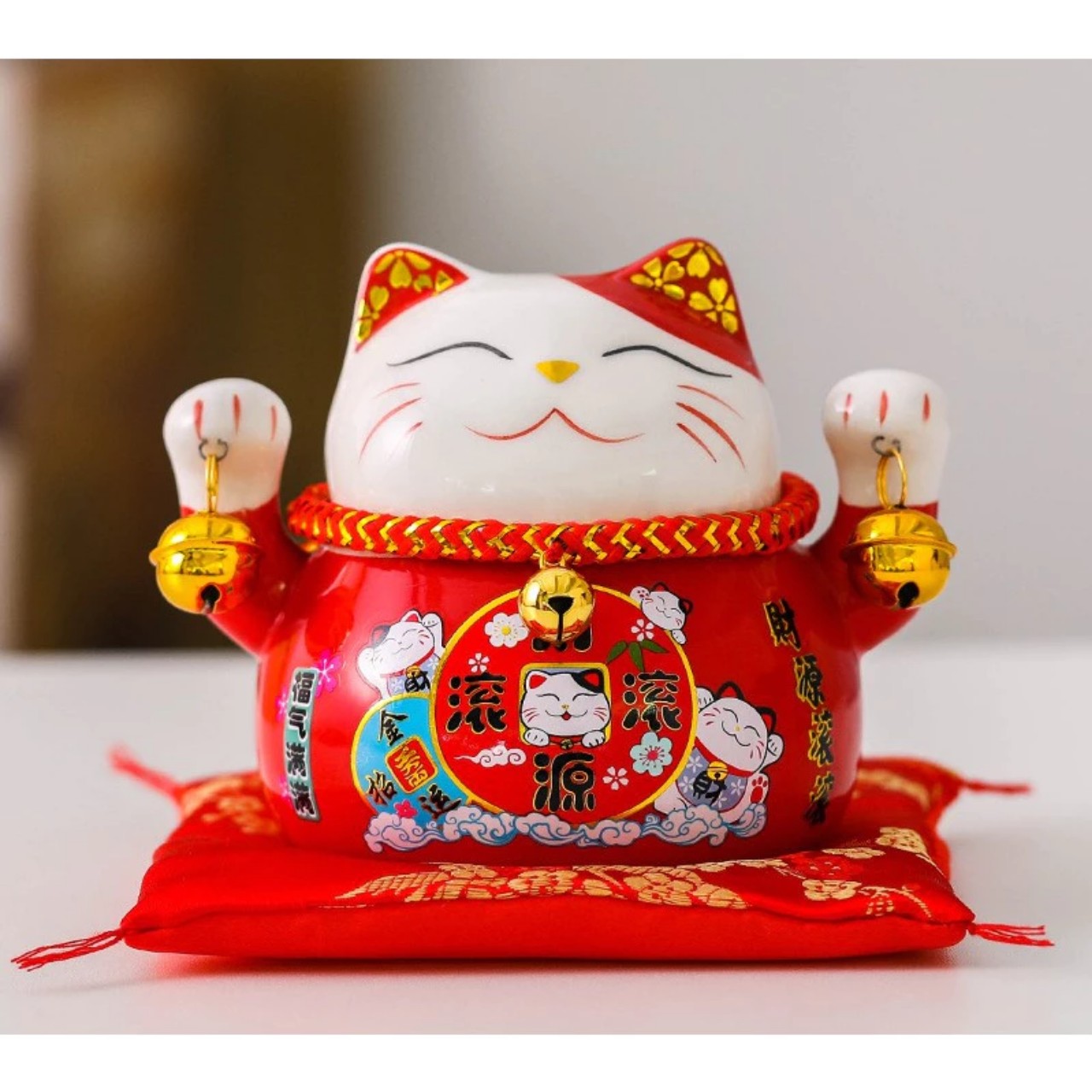 -Mèo thần tài lục lạc ,may mắn , thu hút tài lộc , có khe để tiền , kèm đệm lót xinh xắn ,thu hút khách hàng , mang vận khí tốt lành , công