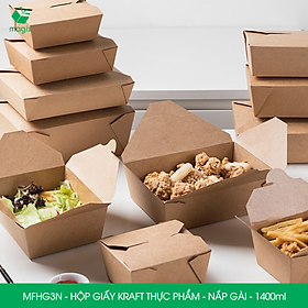 ✨MFHG3N -100 hộp giấy kraft thực phẩm 1400ml, hộp giấy nắp gập màu nâu đựng thức ăn, hộp giấy nắp gài gói đồ ăn mang đi