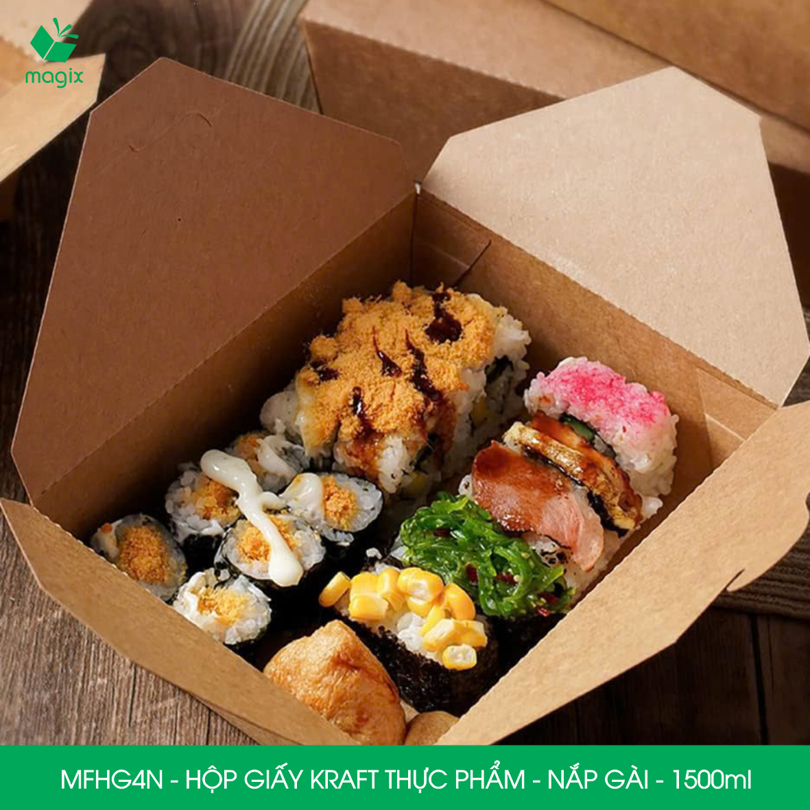 • MFHG4N - Hộp giấy Kraft đựng thực phẩm - Nâu 1.500ml (Miệng: 21.5x16 cm - Đáy: 19.5x14 cm - Cao: 4.8 cm)