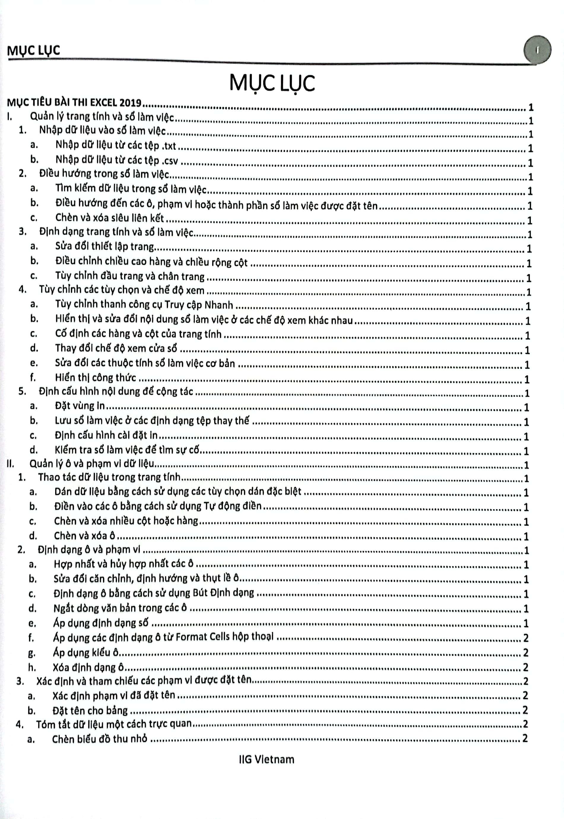 • Sách MOS Excel 2019 được chia thành nhiều bài học, mỗi bài học đề cập đến một chủ đề cụ thể, bao gồm: