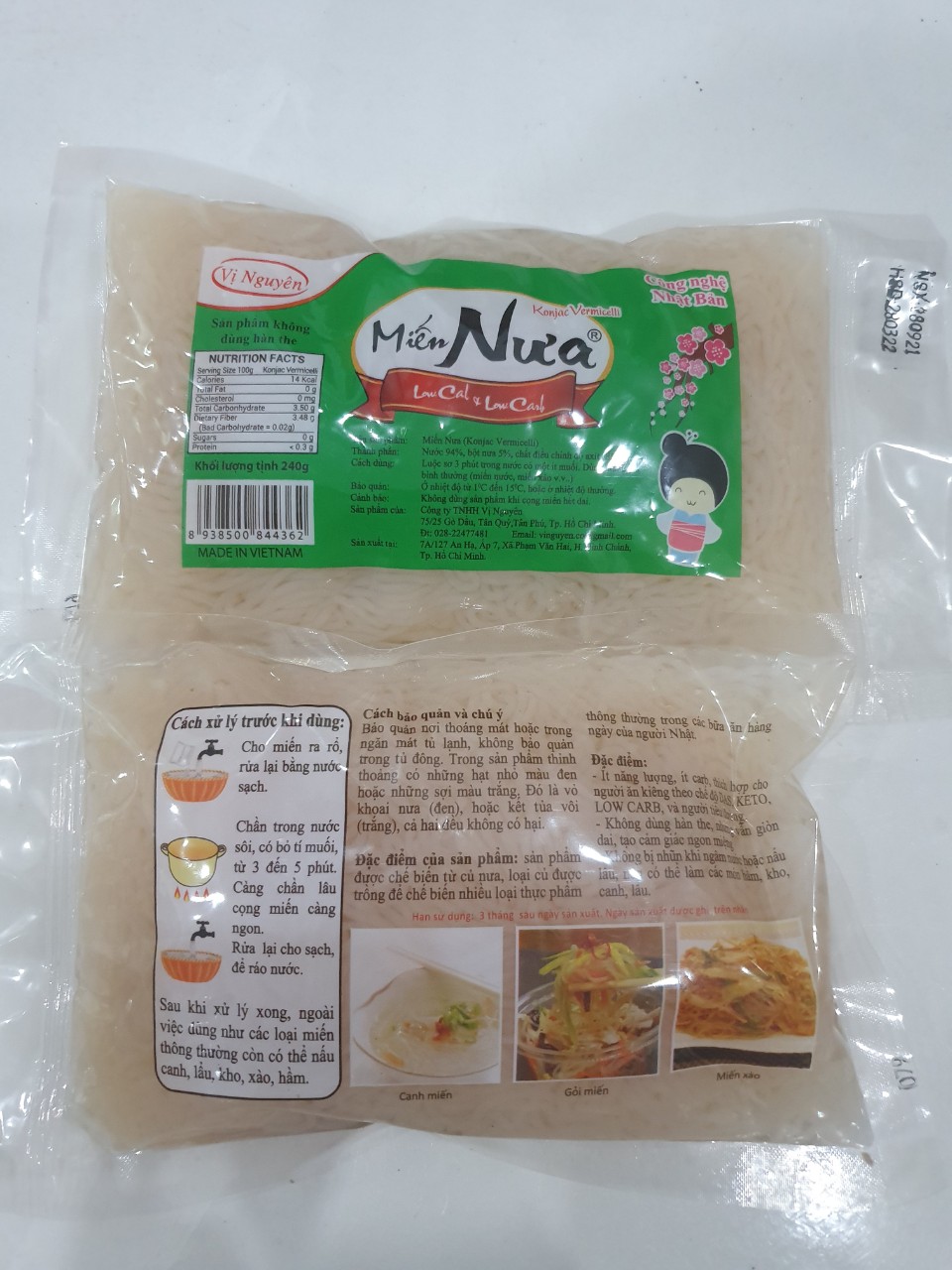 MIẾN NƯA VỊ NGUYÊN 240G - Xuất xứ: Việt Nam - Hạn sử dụng: 6 tháng (gói 240g) - Đóng gói: 240g/gói - Bảo quản: Nơi thoáng mát Những thực phẩm được làm từ bột Glucomanna