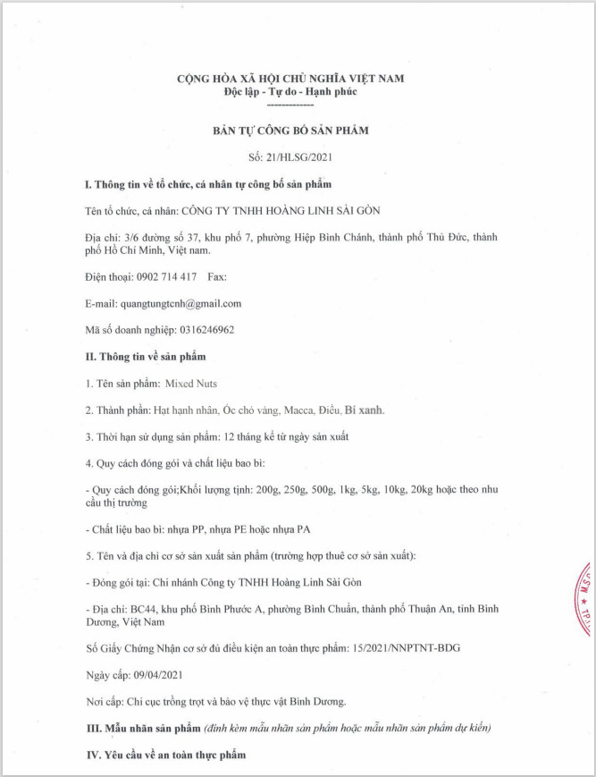 THÔNG TIN SẢN PHẨM HẠT ĐIỀU + Thành phần: hạt điều tự nhiên. + Xuất xứ: Việt Nam. + Trọng lượng: 100G + HSD: 1 năm kể từ ngày sản xuất + Đạt các chứng
