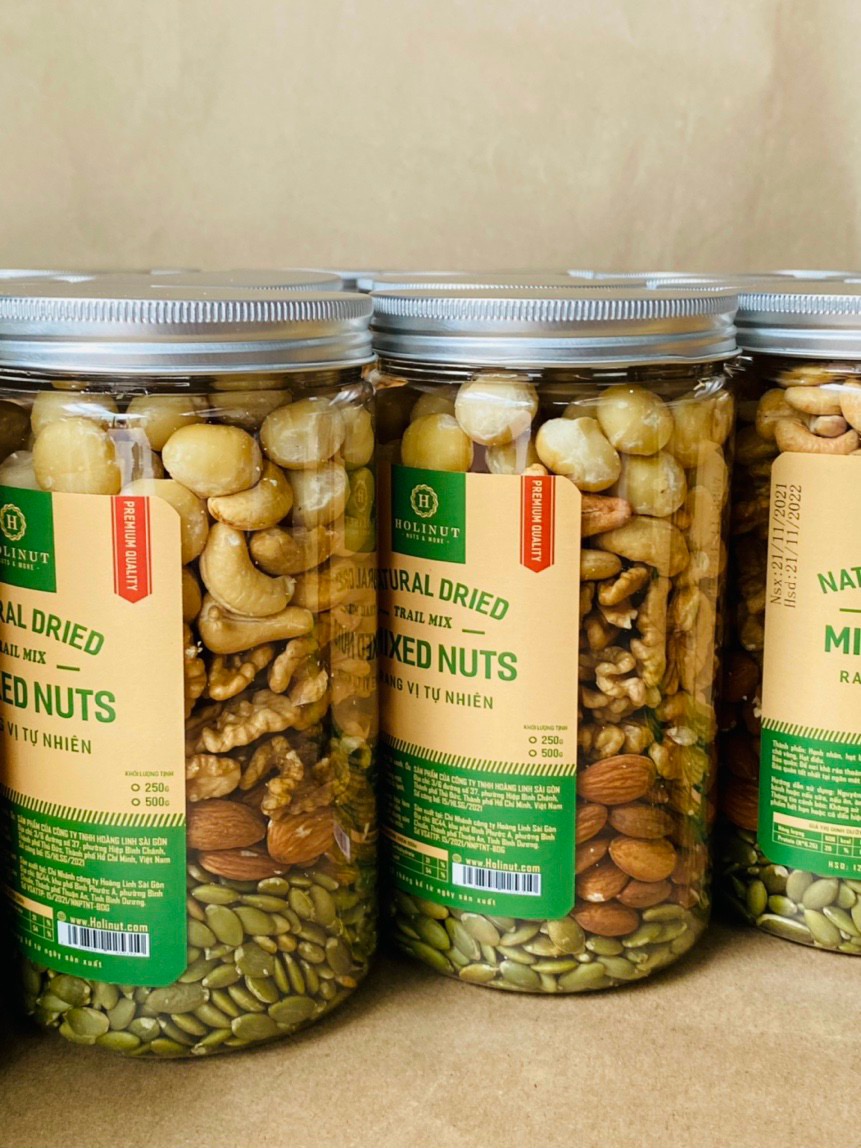 ✨MIX HẠT ĂN LIỀN HOLI 01 - Hạt bí rang, Hạnh nhân rang mộc, Nhân óc chó vàng, Nhân macca, Điều tách lụa / đóng gói 500gram