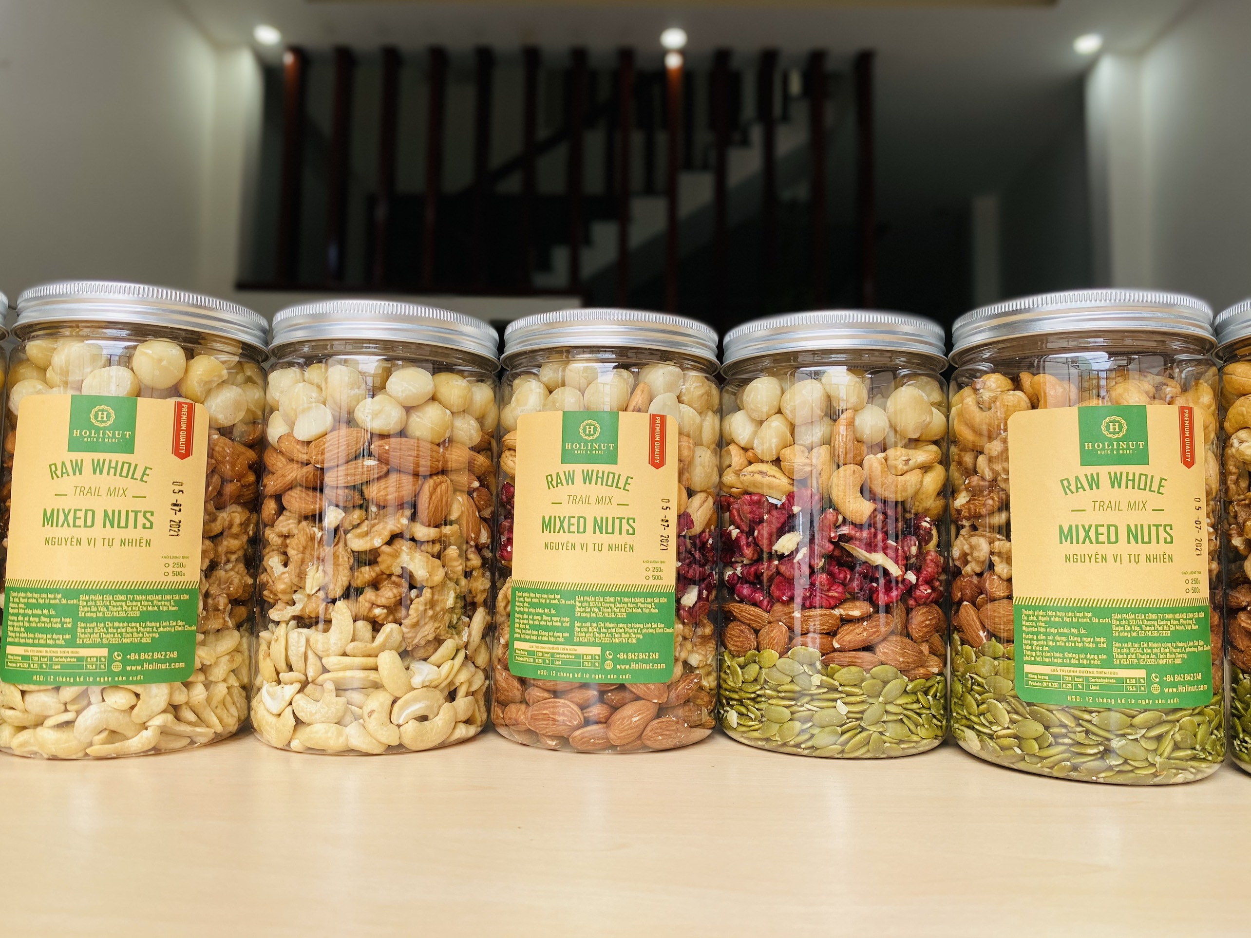 Mua tại TiktokMix hạt dinh dưỡng ăn liền tại Holinut Thành phần: Hạt bí rang, hạnh nhân rang mộc, nhân óc chó vàng, nhân macca, điều tách lụa. Quy cách: hũ/500gram Công dụng của 5 loại hạt mix điều dinh dưỡng: