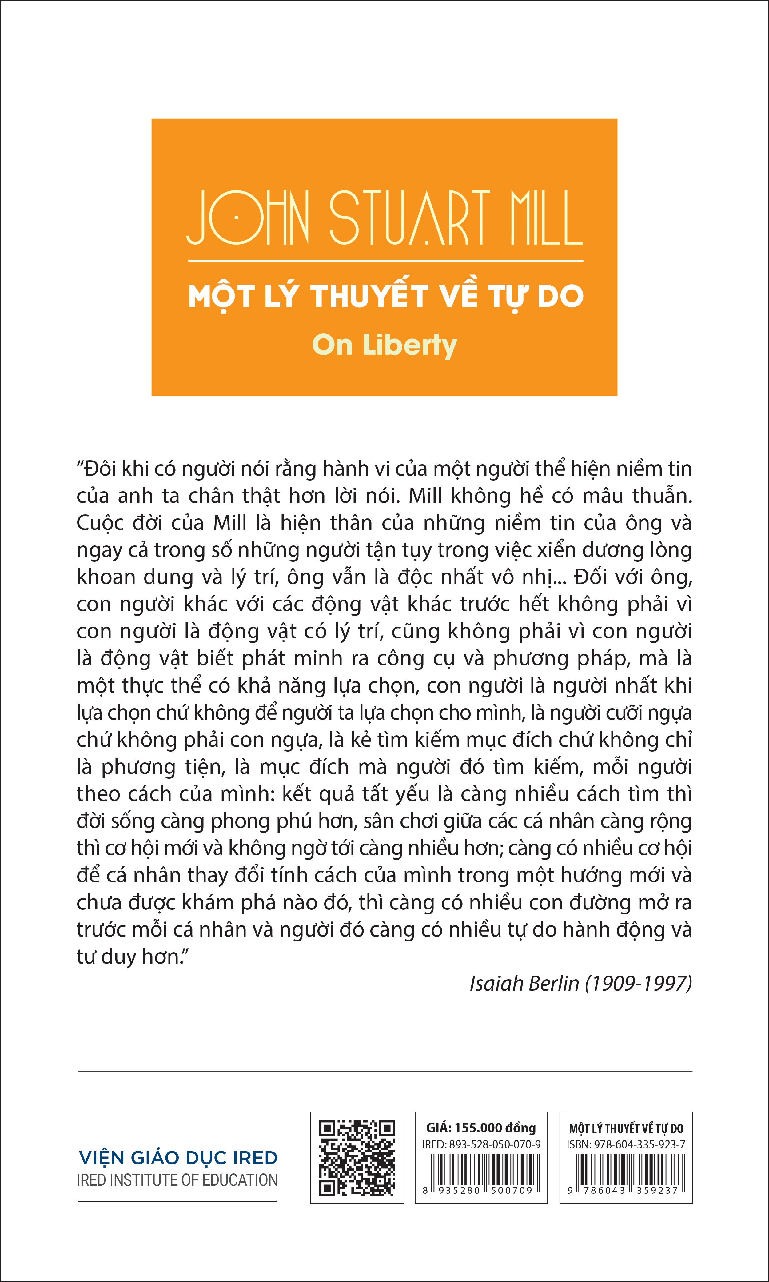 Đây là bản dịch thứ hai tác phẩm On Liberty, một trong những tác phẩm cội nguồn của triết học chính trị phương Tây. Bản dịch đầu tiên Bàn về tự do được Giáo sư Nguyễn Văn Trọng thực hiện và Nhà xuất bản Tri thức ấn hành vào năm 2005, Viện IRED tái bản 2021.