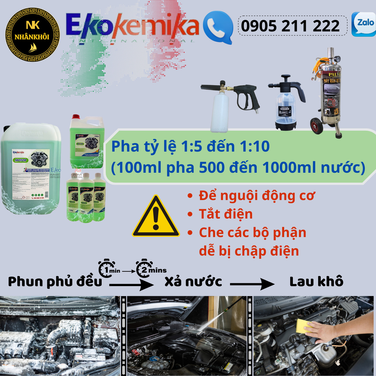 Dung dịch rửa khoang động cơ, khoang máy - Làm sạch dầu mỡ Motor - EkokemikaTạo ra loại bọt hoạt tính loại bỏ 95% bụi bẩn, dầu và chất tĩnh điện trên khoang động cơ xe, trong điều kiện sử dụng thông t...