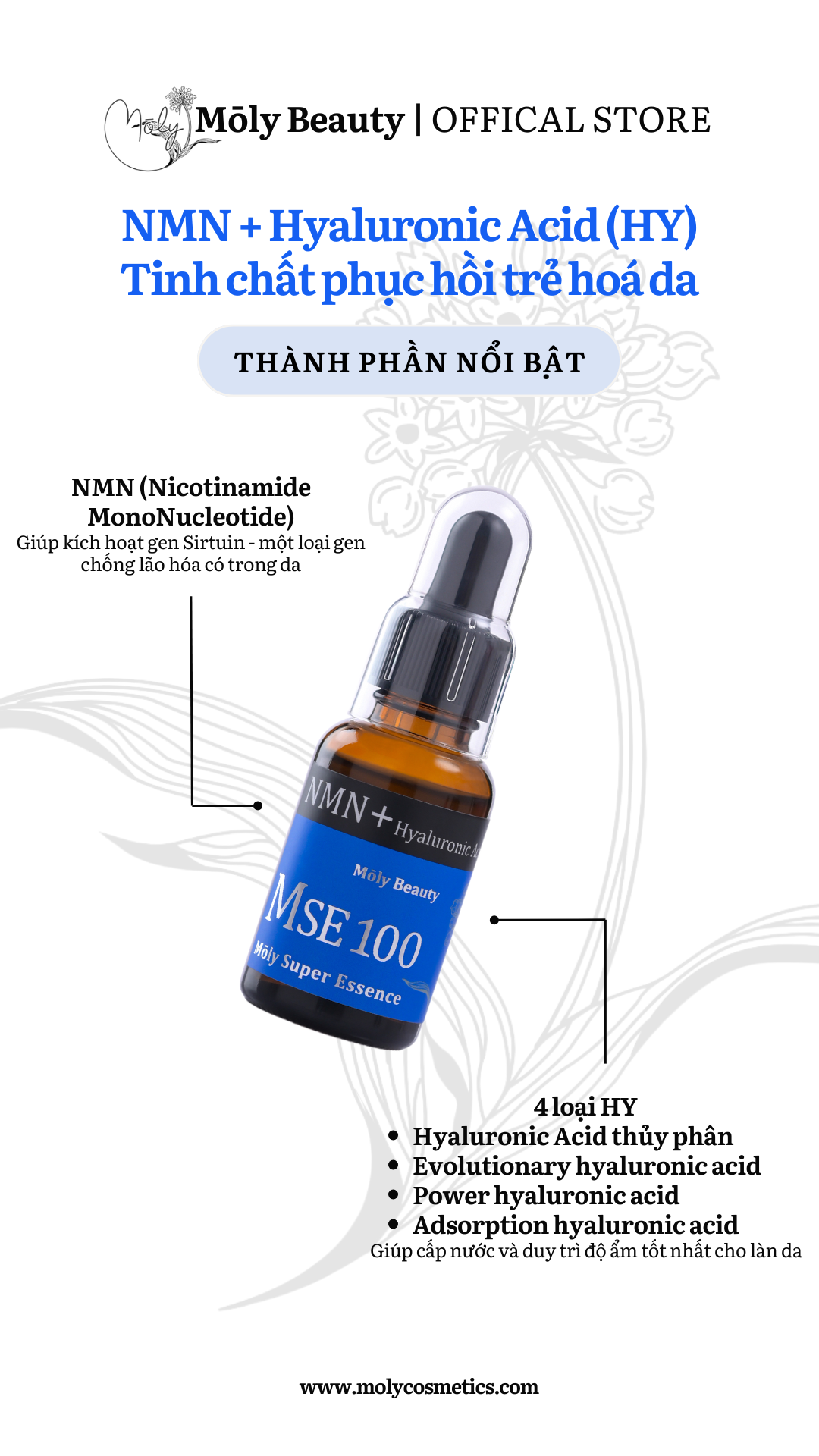 ✨MSE100 Super Essence HY - Tinh chất phục hồi trẻ hóa da NMN+HY 30ml - Mōly Beauty