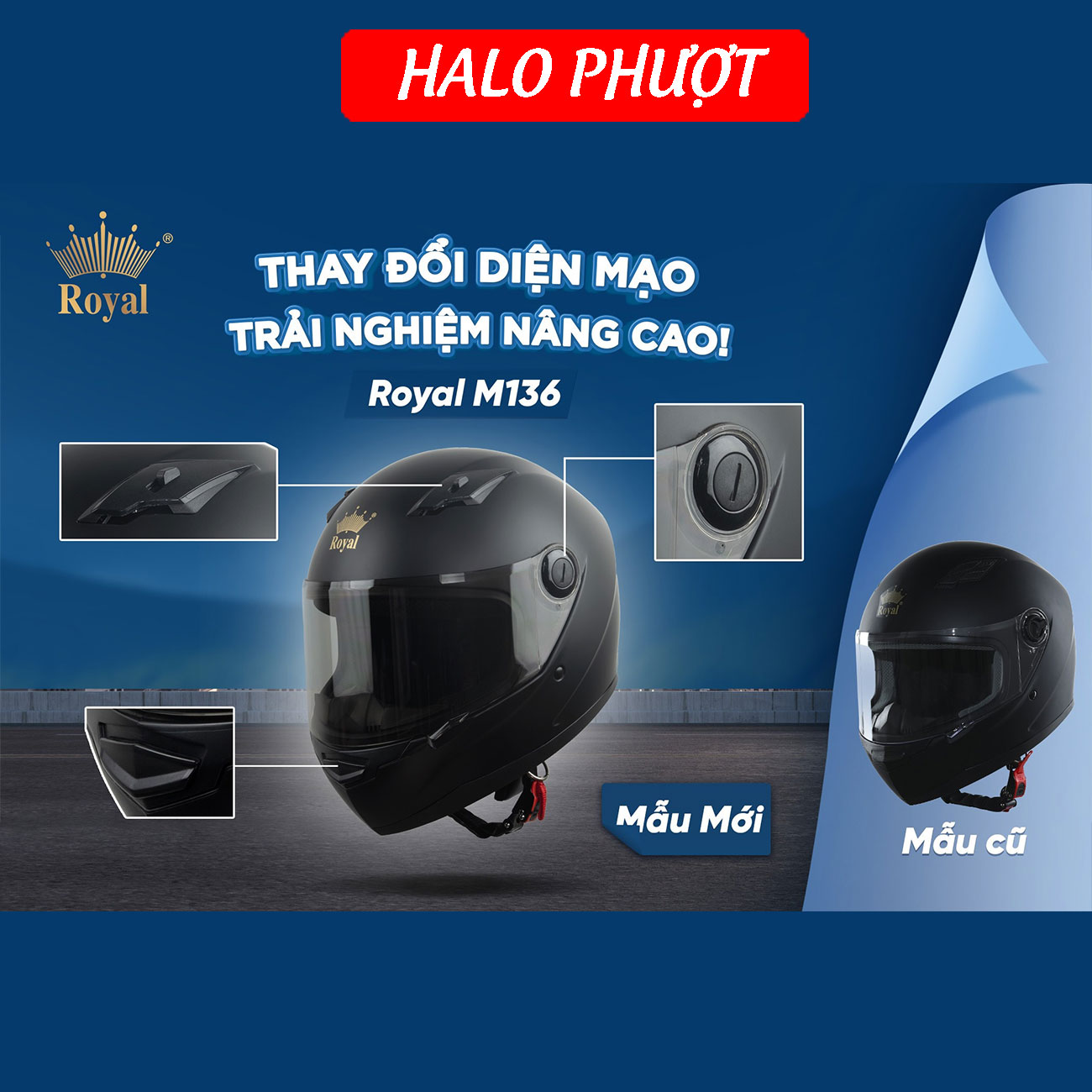 - Mũ bảo hiểm Royal M136 là loại mũ bảo hiểm cả cằm full face- Sang Trọng & An Toàn có thể che chắn vùng đầu, vùng tai, vùng mặt và cả cằm của người đội mũ M136 có thiết kế vỏ ngoài làm bằng hạt ...