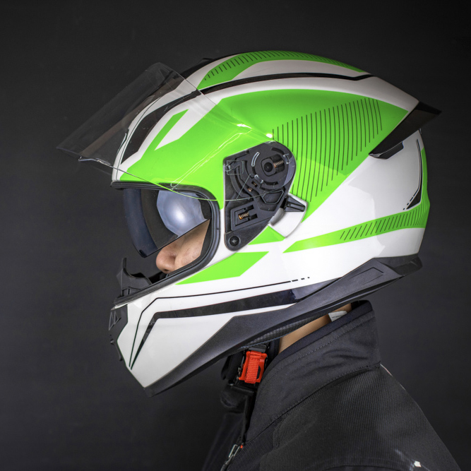 Mũ gồm kính trong chắn ở phía ngoài và có thể nâng cấp thêm kính màu tối, giảm cường độ sáng ở phía trong. Giúp dịu mắt khi đi trong điều kiện ánh nắng gắt. Kính chắn ngoài giúp chống côn trùng khi di chuyển ban đêm.