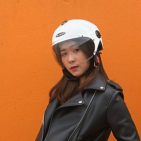 ✨Mũ bảo hiểm nam nữ nửa đầu Sunda 137A cao cấp có kính ẩn màu trắng bóng