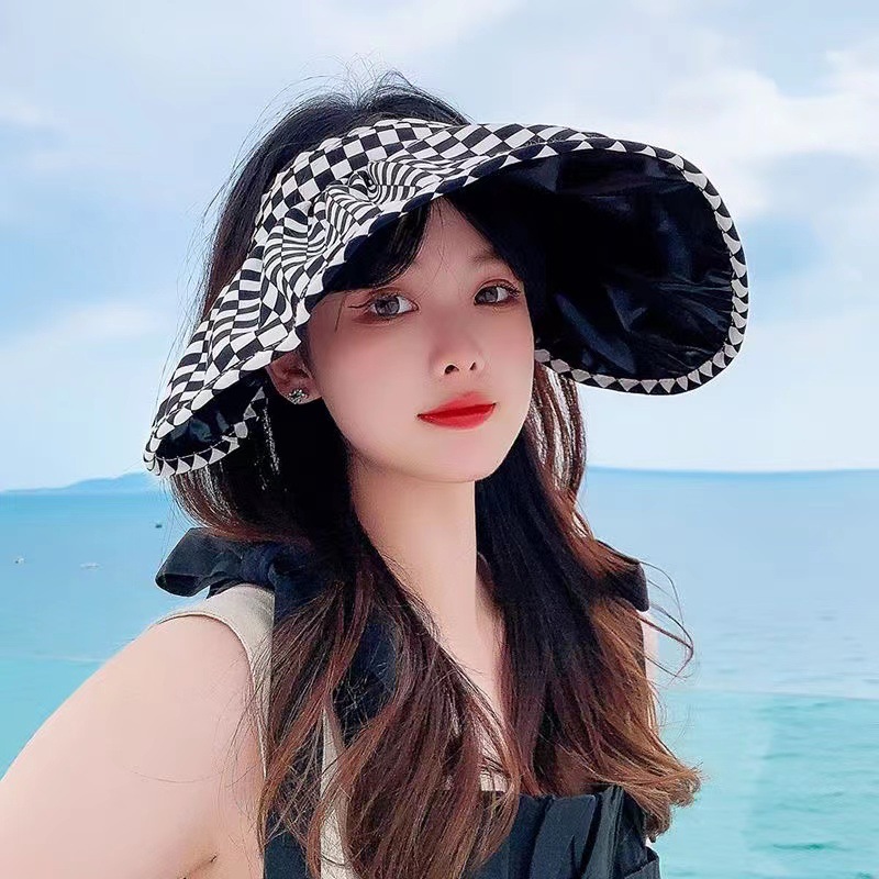 Nón mũ rộng vành đi biển chống nắng cho nữ phiên bản Hàn Quốc mới đi du lịch ngoài trời giải trí có thể gập lại chống tia cực tím Hàng nhập chất liệu vải