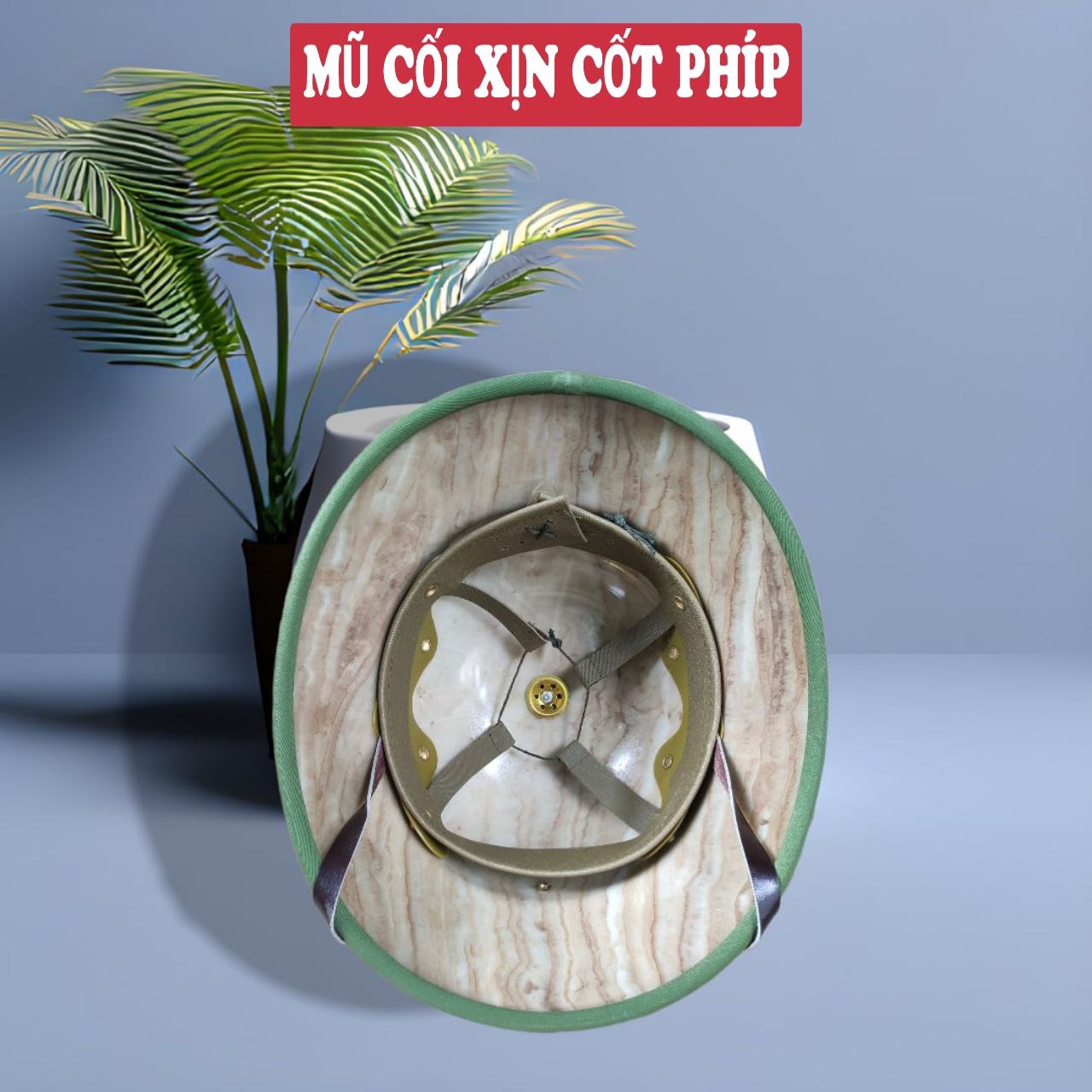 Mũ cối chuẩn 1966 Chịu lực chịu va đập cực tốt chống nước chống phai màu Lòng vàng Bọc Vải chuẩn đẹp Lỗ thông hơi,khuy làm bằng nhôm quai làm bằng da bò Cách điện,