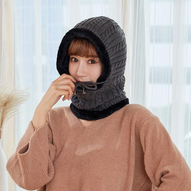 Mũ len trùm cổ lót nỉ ấm áp chóng gió lạnh mua đông phù hợp cả nàm và nữ mũ len lông cừu mềm mịn