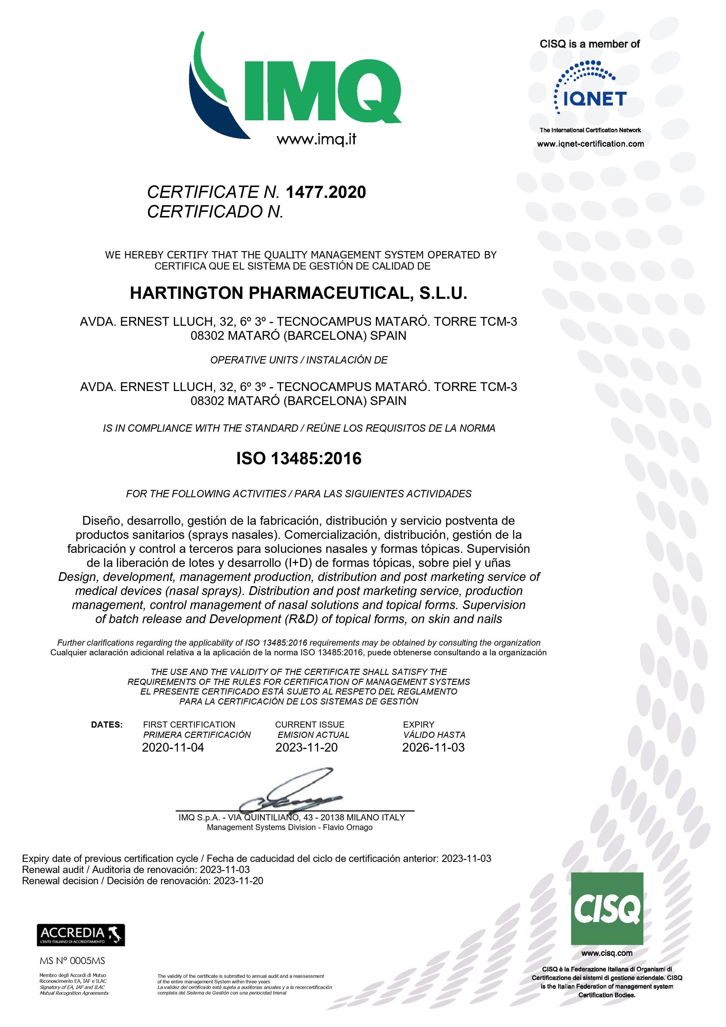 - Nasodren là Sản phẩm Y tế Loại I theo Chỉ thị 93/42 / ECC của EU. Ngày phát hành: 27 tháng 5 năm 2015.