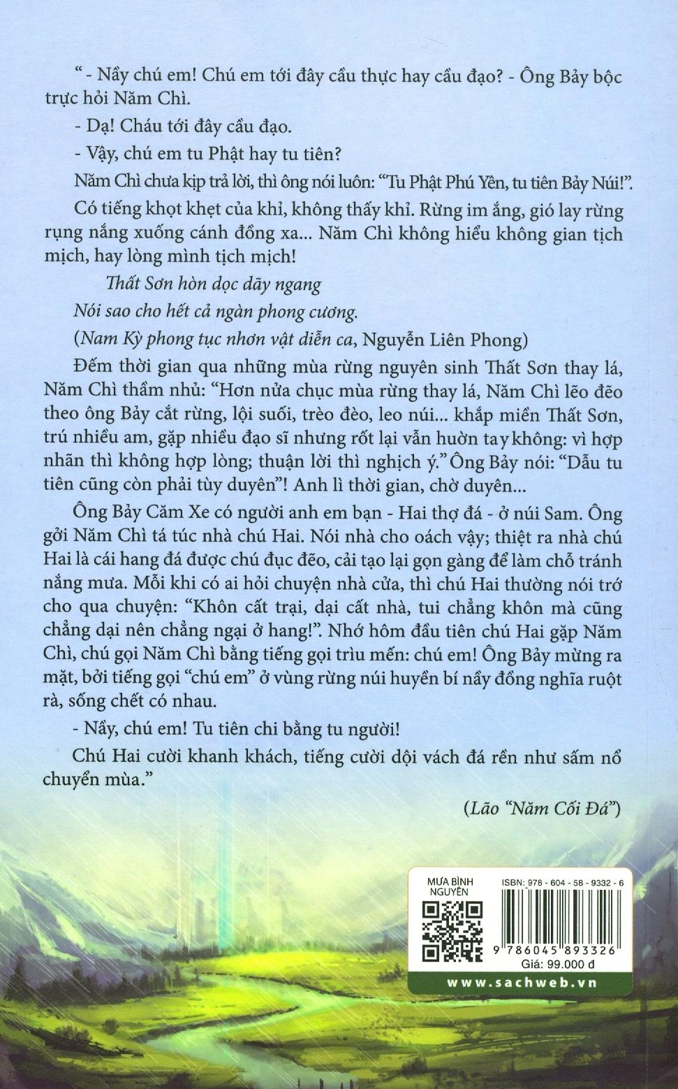 Mỗi nhân vật trong truyện Trần Bảo Định như những cơn mưa bình nguyên mát lành đã làm cho vùng đất phương Nam thêm tươi tốt. Trong tập Mưa bình nguyên này, tác giả Trần Bảo Định kể nhiều về con người, vùng đất Long An, quê hương ông. Những địa danh An Vĩnh Ngãi, Rạch Heo, Cái Cỏ, tưởng chừng như quá đỗi quen thuộc nhưng đằng sau đó là biết bao con người với số phận đặc biệt lần đầu tiên được tác giả dựng lên đầy cuốn hút.