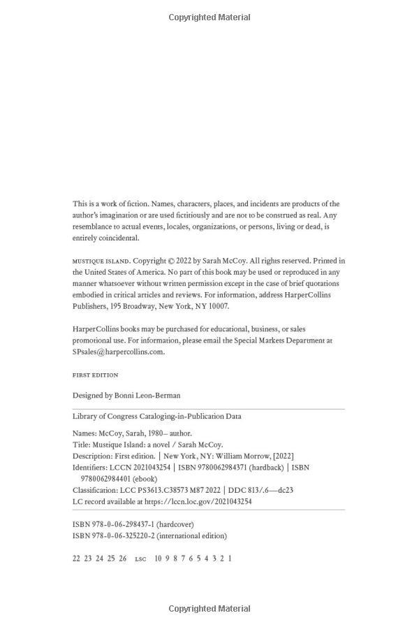 From bestselling author Sarah McCoy, a sun-splashed romp with a rich divorcée and her two wayward daughters in 1970s Mustique, the world’s most exclusive private island, where Princess Margaret and Mick Jagger were regulars and scandals stayed hidden from the press.