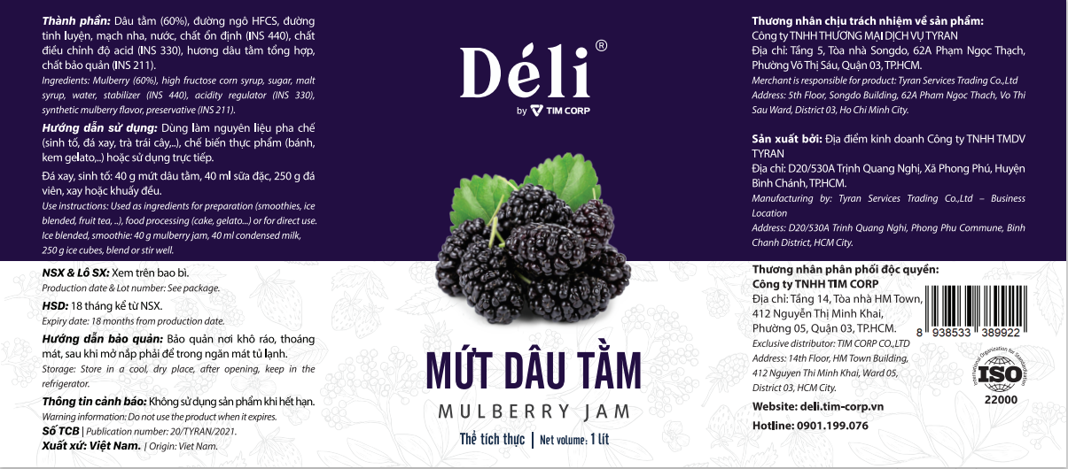 ✨Mứt dâu tằm pha chế Déli - chai 1L