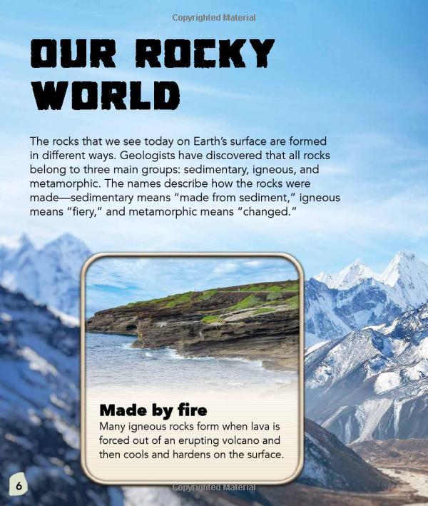Pack up your gear and get ready to go on a dig. Whether it's iron ore, dazzling gemstones, or a prehistoric creature preserved in amber, exciting discoveries await budding paleontologists and geologists in this informative book. Large and detailed full-color spreads, complemented by clear, concise text unearth the mysteries of rocks, crystals, minerals, and fossils--how they are formed, where they are found, and how they are used. Includes an illustrated glossary and an index to sharpen the young reader's reference skills.