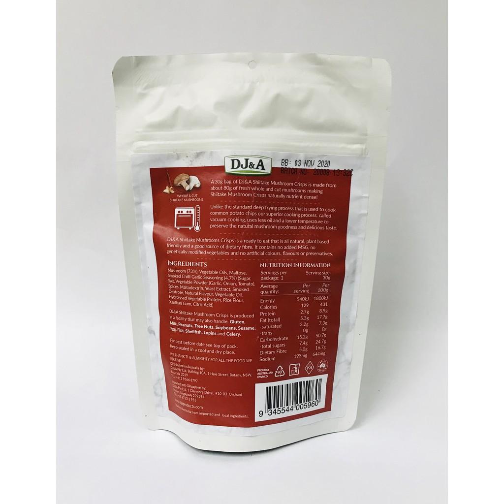 ✨Nấm hương sấy giòn vị tỏi ớt DJ&A 65g - thuần chay, vegan - Skitake mushroom crisps smoked chilli & garlic