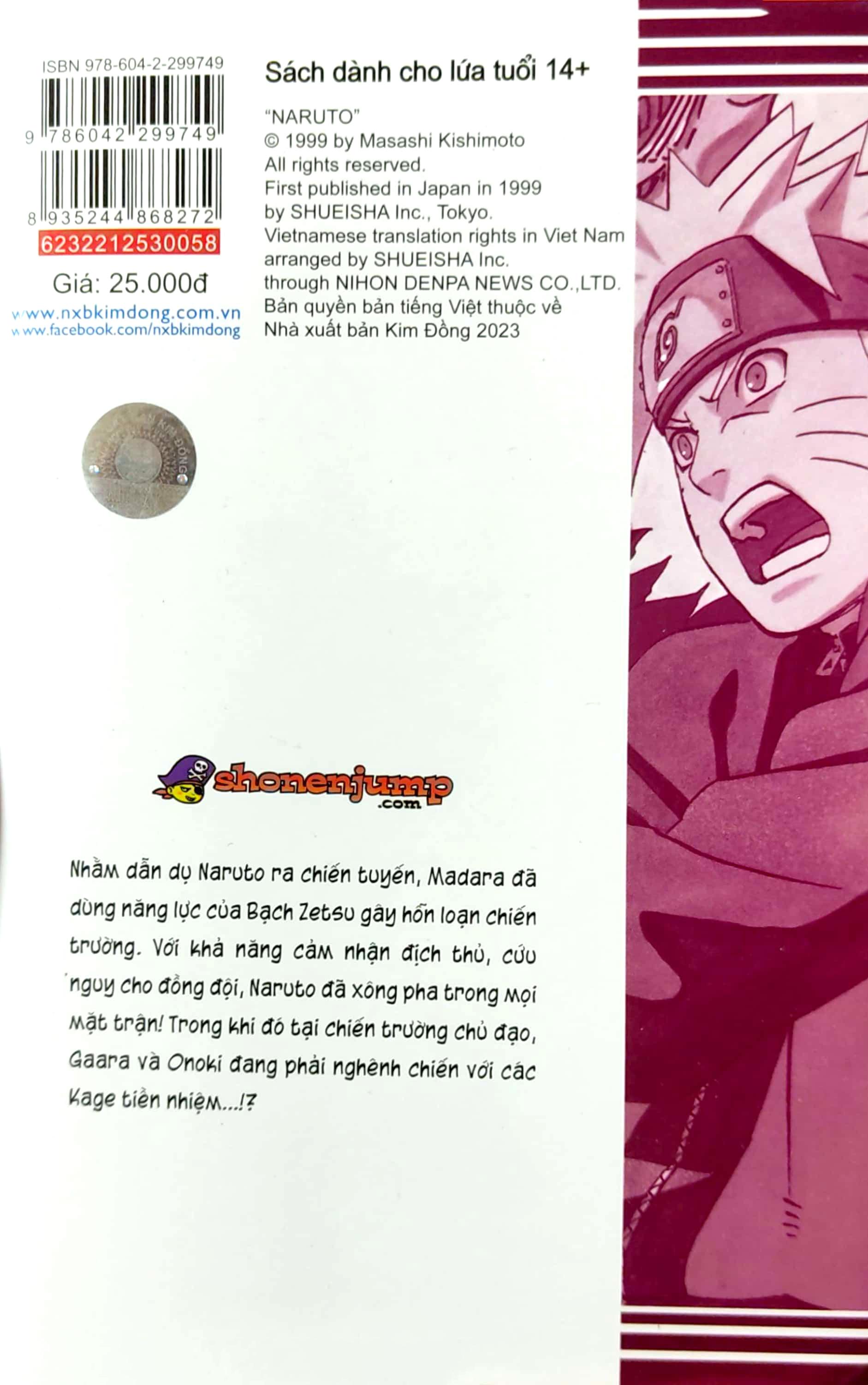 Mua tại TiktokNaruto - Tập 58: Naruto VS. Itachi!! (Tái Bản 2022) Nhằm dẫn dụ Naruto ra chiến tuyến, Madara đã dùng năng lực của Bạch Zetsu gây hỗn loạn chiến trường. Với khả năng cảm nhận địch thủ, cứu nguy cho đồng đội, Naruto đã xông pha trong mọi mặt trận! Trong khi đó tại chiến trường chủ đạo, Gaara và Onoki đang phải nghênh chiến với các Kage tiền nhiệm… MASASHI KISHIMOTO Nhờ sự ủng hộ của quý vị, đến năm sau phim hoạt hình NARUTO cũng kỉ niệm 10 năm phát sóng. Tôi vô cùng biết ơn đội ngũ làm phim hoạt hình! Và cũng không biết phải dùng lời nào để nói hết lòng cảm tạ sâu sắc với các độc giả đã luôn ủng hộ NARUTO! Ôi, đó là cảm xúc thực sự của tôi lúc này đấy…!