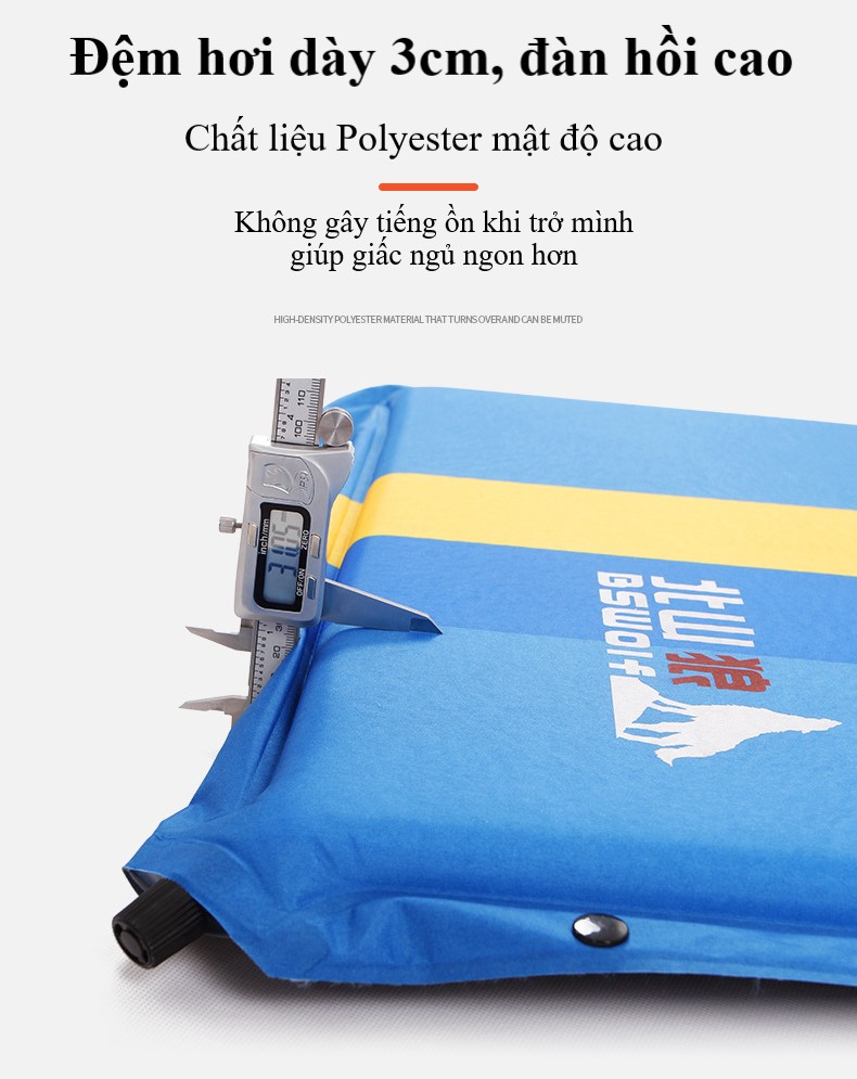 THÔNG TIN SẢN PHẨM: - Thương hiệu: BSWOLF - Tên sản phẩm: Nệm hơi đơn cắm trại - Mã sản phẩm: BSW-Q3019 - Chất liệu: Vải polyester taffeta - Kích thước sử dụng: 192 x