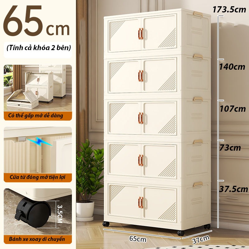 ✨(Ngang 45-75cm) Tủ Nhựa Gấp Gọn Size Lớn, Tủ Đựng Quần Áo Đa Năng Lắp Ghép, Để Đồ Tiện Dụng, Nhựa PP, Có Bánh Xe