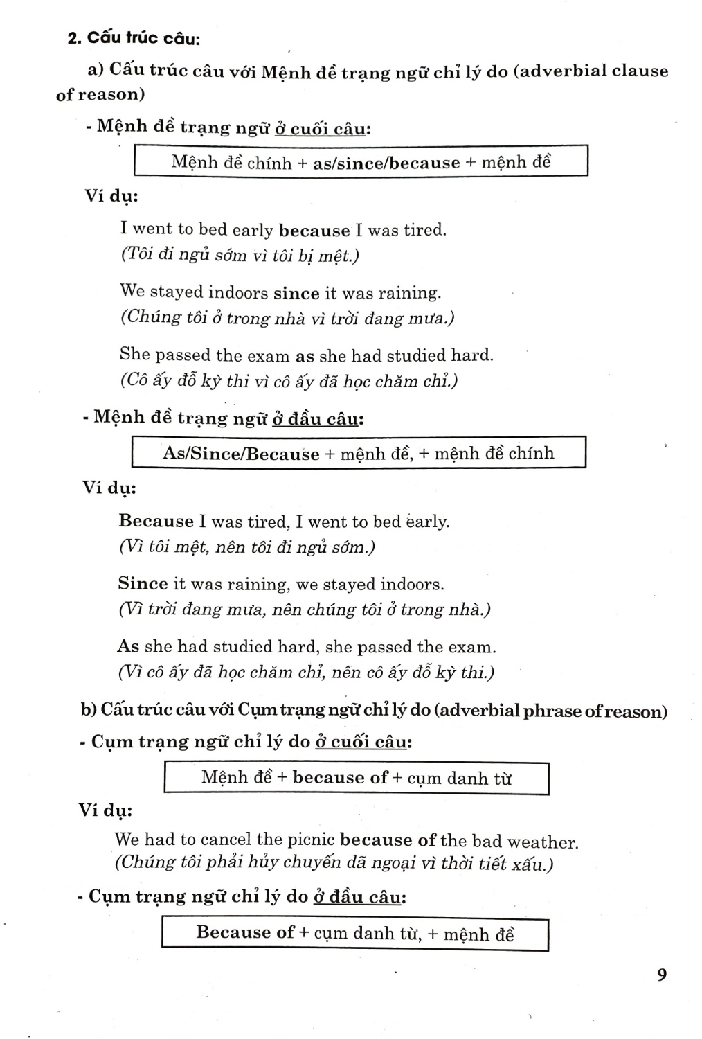 Sách bao gồm nhiều chủ điểm ngữ pháp và bài tập thực hành để các em học tập, rèn luyện và trau dồi kiến thức ngữ pháp tiếng Anh. Các chủ điểm ngữ pháp bám sát nội dung trong sách giáo khoa, ngoài ra còn được mở rộng thêm để các em nắm vững hơn về cách dùng động từ nguyên mẫu có to (to-infinitive); Cụm động từ (Phrasal verb); Mệnh đề trạng ngữ/cụm trạng ngữ chỉ lý do (Adverbial clauses/phrases of reason); Ôn tập về cách dùng “Would”; Cách dùng “Used to”; Mệnh đề quan hệ xác định (defining relative clause) với đại từ quan hệ.; Cách dùng “wish” với thì quá khứ đơn (past simple); Câu tường thuật (Reported speech); Cách dùng “could” và các từ hỏi (wh-words) trước to-infinitive; Cách dùng suggest + gerund (danh động từ); Mệnh đề trạng ngữ/cụm từ chỉ sự nhượng bộ; Cấu trúc so sánh hơn với các từ nhấn mạnh; Cách dùng cấu trúc động từ + danh động từ (verb + gerund); Cách dùng mệnh đề quan hệ không xác định; Thì quá khứ tiếp diễn (Past Continuous); Cách dùng các mệnh đề trạng ngữ chỉ kết quả (adverbial clauses of result); Câu điều kiện loại 1 với động từ khiếm khuyết (First Conditional with modal verbs); Cách dùng cấu trúc “Động từ + to infinitive”.