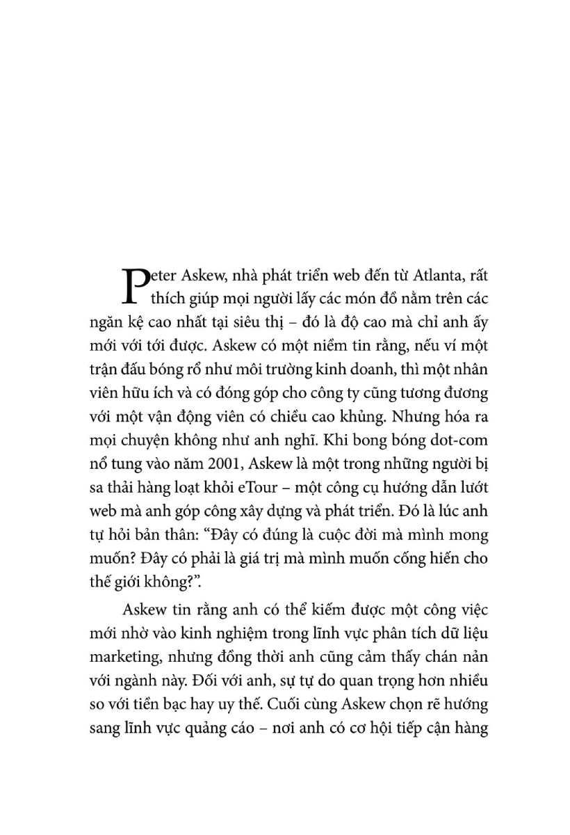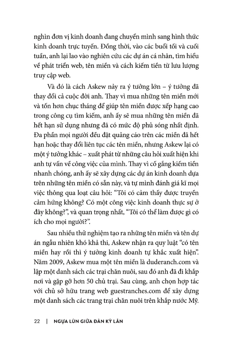 Nhiều nhà kinh doanh và những người đang có ý định khởi nghiệp cũng đã trải qua quá trình tự hỏi bản thân rất nhiều và kết quả là đi đến cùng một kết luận. Bạn sẽ bắt gặp nhiều câu chuyện của họ trong cuốn sách Ngựa Lùn Giữa Đàn Kỳ Lân. Trong sách, họ được gọi là những “doanh nhân tối giản” và gọi công ty của họ là “doanh nghiệp tối giản”.