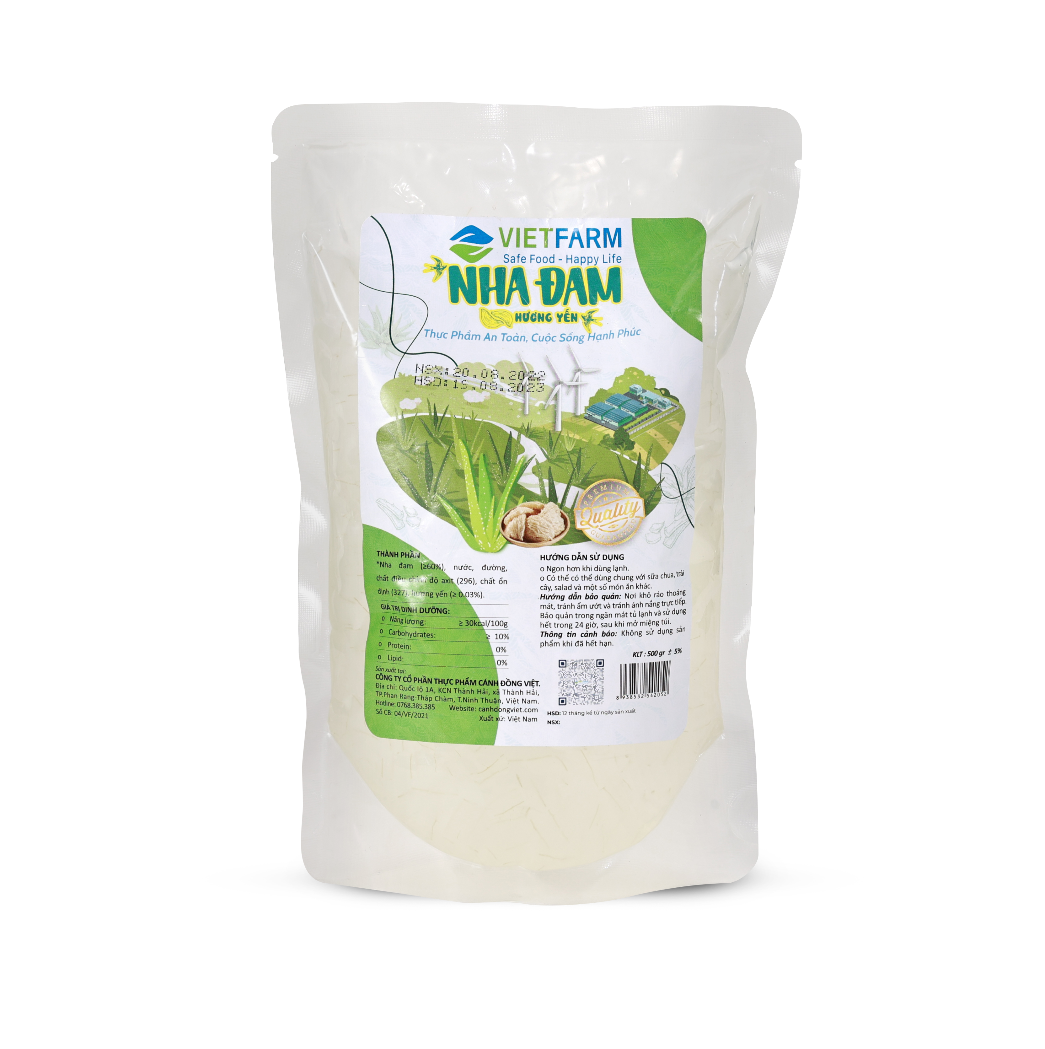 Thạch nha đam Vietfarm được sản xuất bởi Công ty CP Thực phẩm Cánh Đồng Việt, Cty sản xuất nha đam lớn nhất Việt Nam hiện nay. Quy trình sản xuất khép kín, đảm bảo