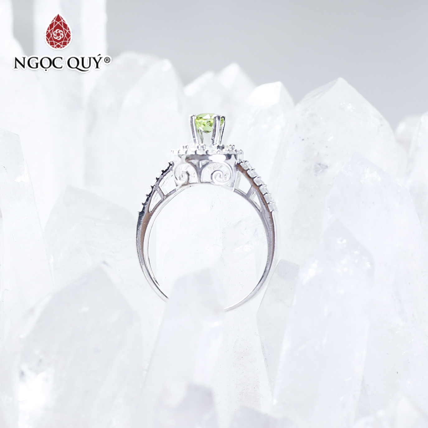 NHẪN BẠC NỮ ĐÁ PERIDOT : Đá Peridot thực chất được hình thành từ đá magma trong tinh thể núi lửa , đá được tìm thấy ở hệ tinh thể trực thoi, hiếm khi ở