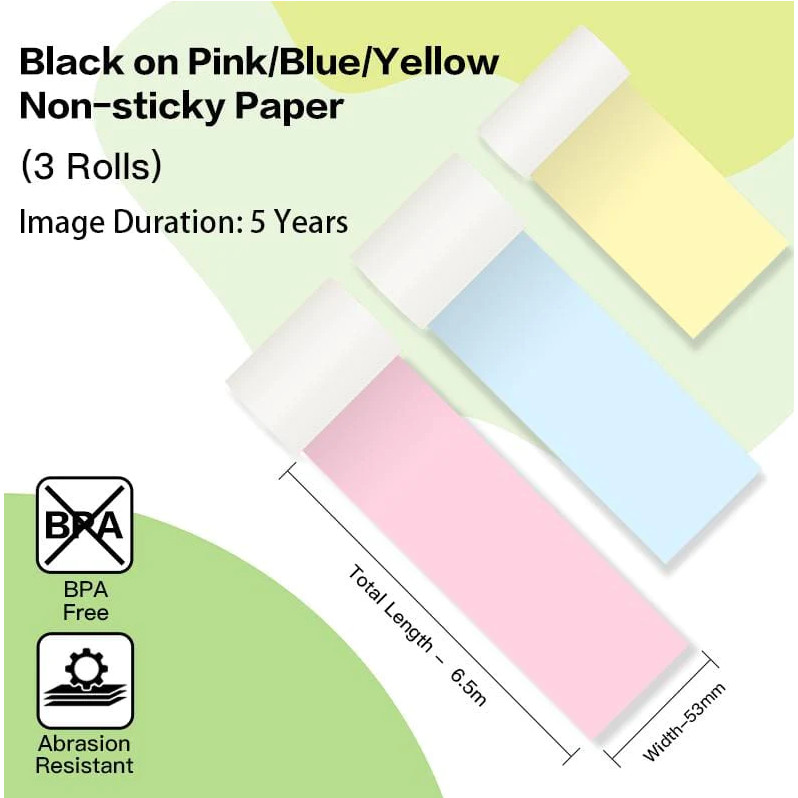 ✨Nhãn Dán Vàng/Hồng/Xanh KT-RMYPB, Độ Bền 5 Năm, 53mm X 6.5m - Sử dụng cho máy in nhãn T02 của Aimo - Hàng chính hãng