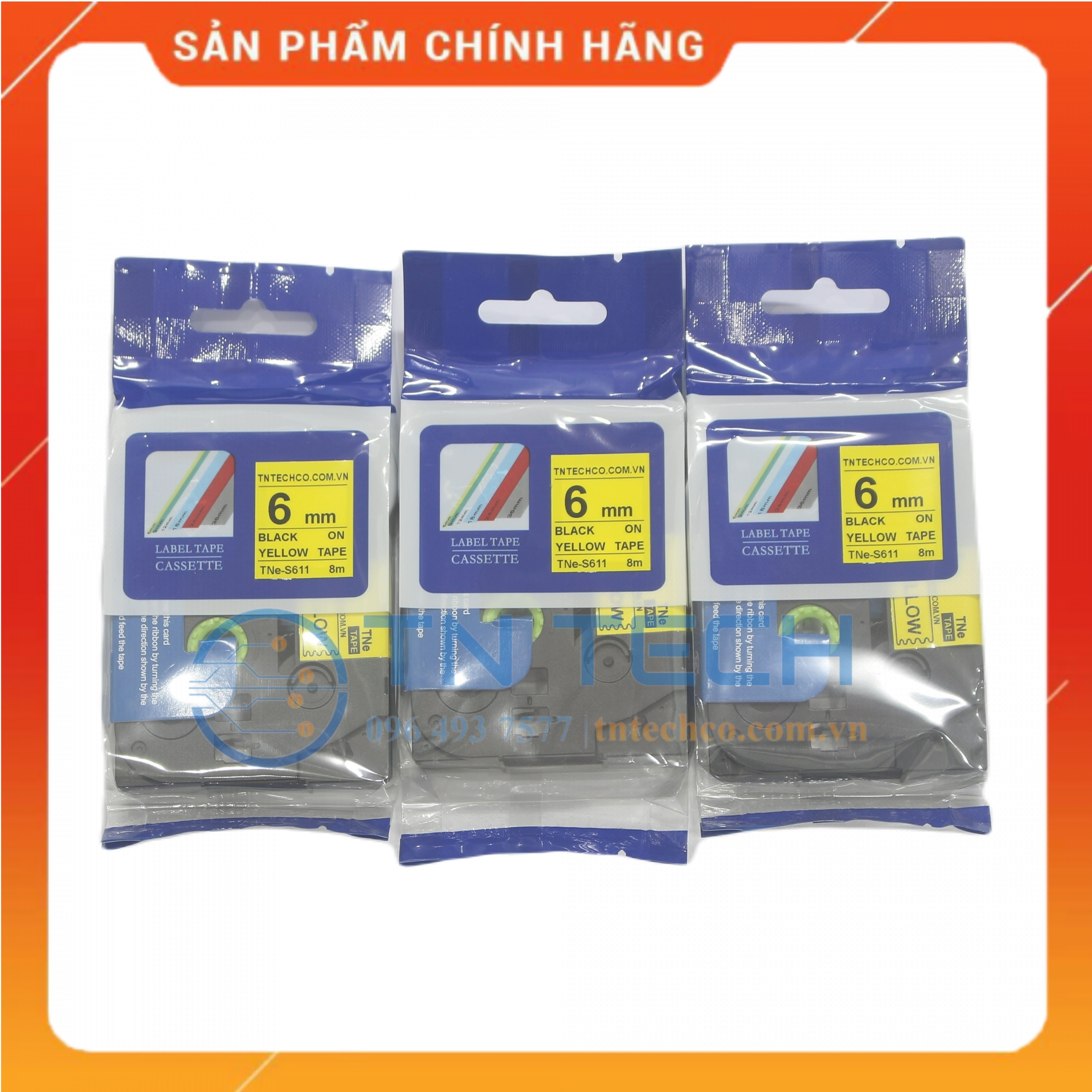 Nhãn in TNE-S611 Brother Nhãn in đa lớp sử dụng cho máy in nhãn Brother, tất cả trong 1, mực nằm bên trong, chống chịu dung môi, hóa chất, nước, dầu mỡ, nhiệt độ Mã