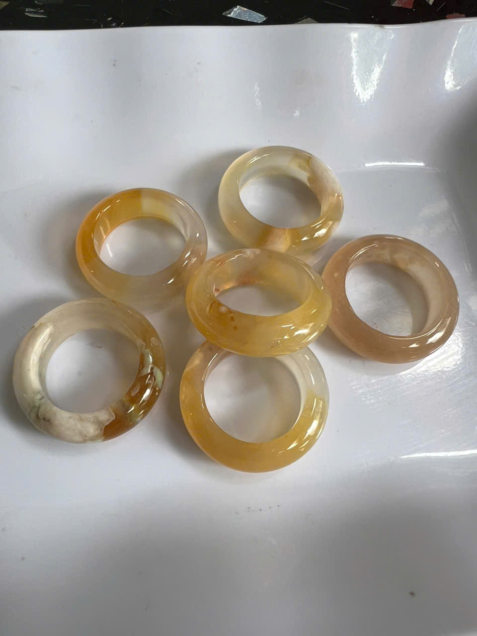 Nhẫn Nữ mới Đá Mã Não Bông Vàng Trắng Đậm Nhạt Bóng Đẹp Ni 17mm Cao 7mm Dầy 4mm Chị em Nữ mệnh Kim mệnh Thủy mệnh Thổ đeo lên tay xinh xắn may mắn ạ