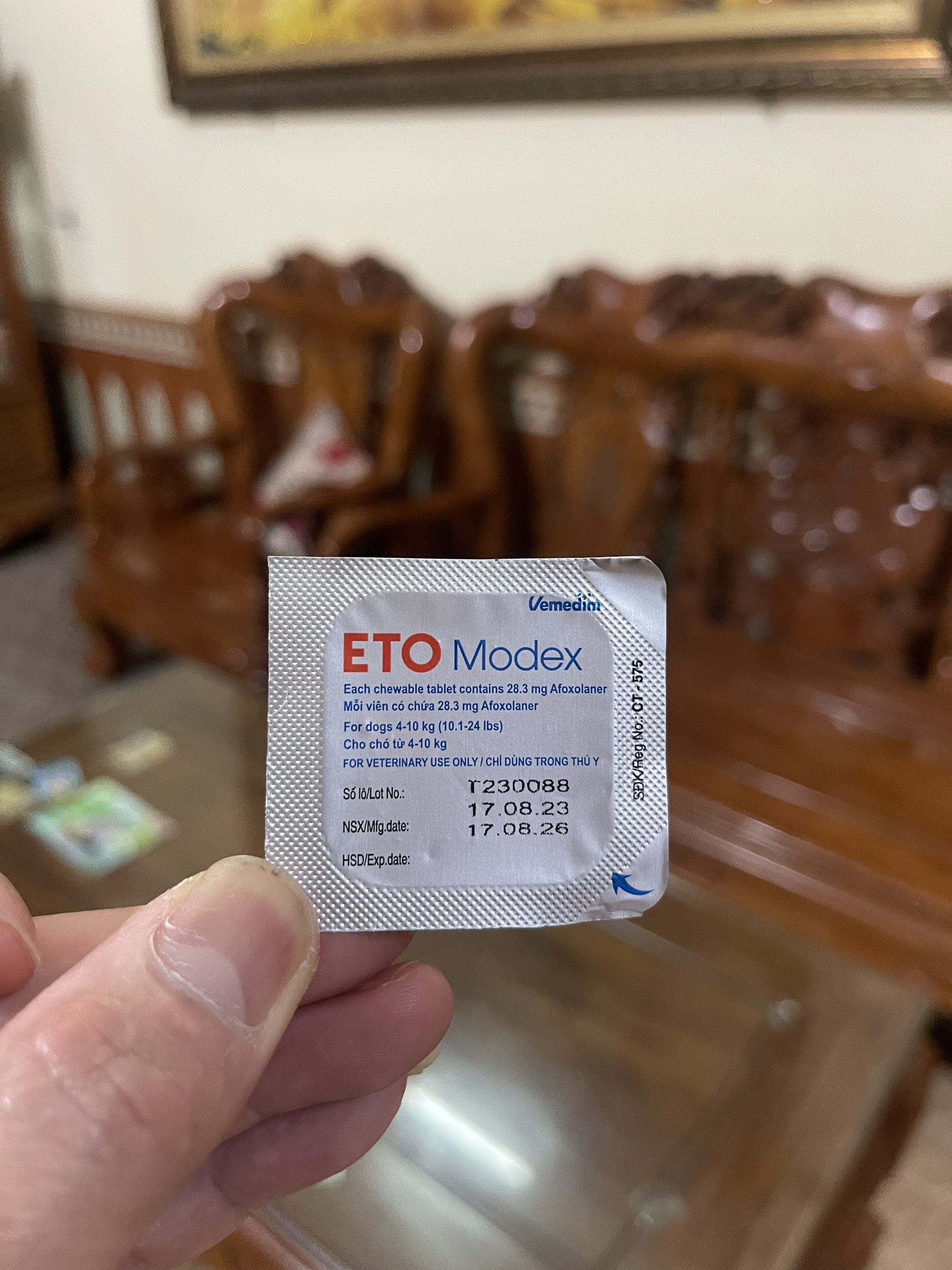 - Thuốc Trị Ve Ghẻ Nhỏ Sống Lưng, Nhỏ Tai Chó Vemedim Fronil Spot một ống 0.67ml/con trọng lượng từ 2-10kg. Nhỏ thuốc trực tiếp lên da. - Để đứng và đưa ống thuốc xa