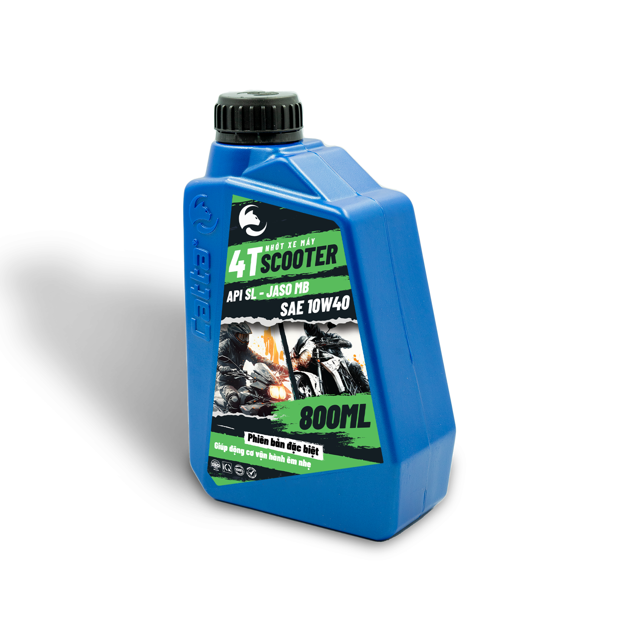 DẦU NHỚT XE XE TAY GA CATTA 4T SCOOTER SAE 10W40 – API SL – JASO MB – 24/0.8L GIỚI THIỆU Dầu nhớt xe máy CATTA 4T SCOOTER SAE 10W40, API SL, JASO MB 24/0.8L là sản phẩm dầu bôi trơn động cơ dành cho các dòng xe tay ga 4 thì. Nhớt xe máy CATTA giúp làm giảm ma sát, động cơ vận hành êm hơn và nhẹ nhàng hơn. Công thức riêng biệt kết hợp giữa dầu gốc và những phụ gia chất lượng theo một tỷ lệ hoàn hảo giúp sản phẩm dầun nhớt xe máy Catta có tính năng bôi trơn vượt trội, đồng thời bảo vệ và kéo dài tuổi thọ động cơ tối ưu. Sản phẩm dầu nhớt Catta được sản xuất từ nguyên liệu nhập khẩu hoàn toàn trên dây chuyền công nghệ hiện đại, đội ngũ kỹ thuật tận tâm và nhà máy đạt chứng nhận ISO 9001:2018. Tiêu chuẩn quốc tế đáp ứng: