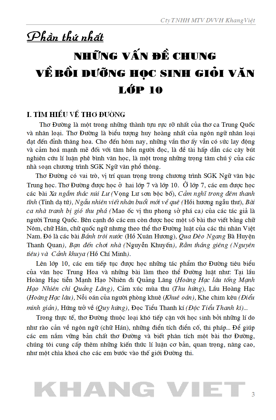 Phần thứ nhất: Những vấn đề chung về bồi dưỡng học sinh giỏi Văn lớp 10