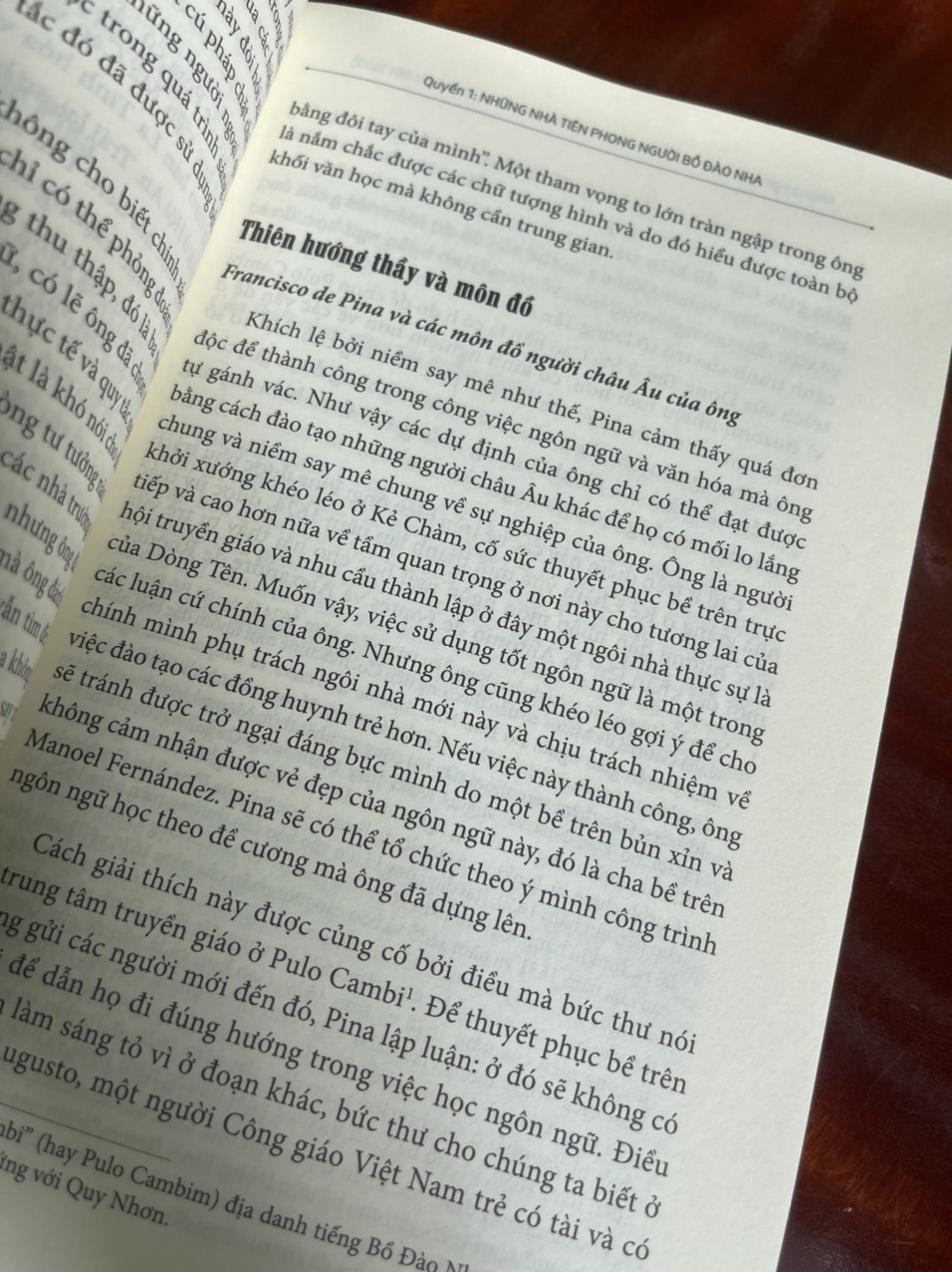 “Những giáo sĩ sang Việt Nam như các cha cố Gaspar Amiral [Gaspar do Amaral] và Antoine Barbore [António Barbosa] đều là người Bồ Đào Nha, sau một thời gian, đã làm được tự vị Bồ Đào Nha-An Nam và tự vị An Nam-Bồ Đào Nha. Và nhất là cha cố người Pháp Alexandre de Rhodes là một nhà bác học rất giỏi về khoa ngôn ngữ đã tới Việt Nam, học tiếng Việt và giảng đạo bằng tiếng Việt… Tất nhiên việc khai sinh ra chữ Quốc ngữ này có công sức đóng góp của nhiều người nhưng ông là đại diện và giữ công đầu” (Hoàng Tiến).