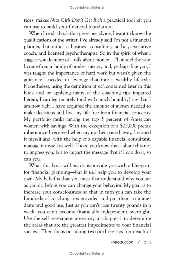 In NICE GIRLS DON'T GET RICH, Dr. Frankel offers women financial and investment advice for succeeding in life. Although women may not know it, certain behaviors and habits that they learned when they were girls