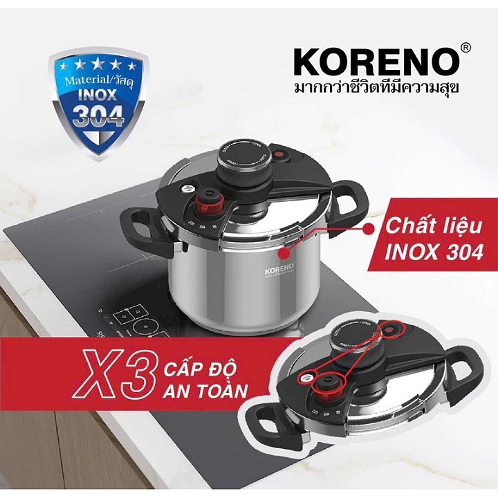 RẺ THẬT Nồi áp suất inox 304 Koreno Thái Lan dung tích 5 Lít dùng bếp từ #sanhangre zalo 0986588655