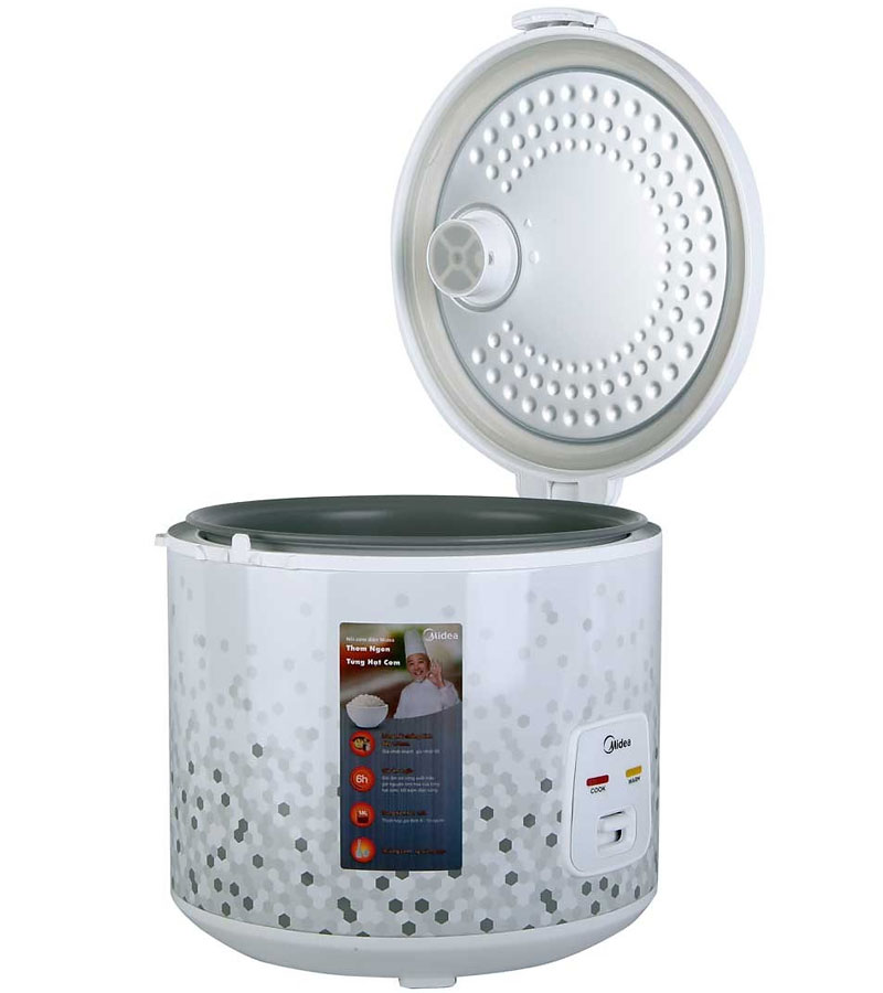 Midea MR-CM1821 được thiết kế đơn giản với một nút gạt chuyển từ chế độ hâm nóng sang chế độ nấu. Khi nấu thì bạn gạt công tắc xuống dưới đèn báo sẽ hiển thị chế độ nấu (Cook), khi cơm chín rơ le sẽ tự động nảy lên và đèn báo ở chế độ warm (giữ ấm).