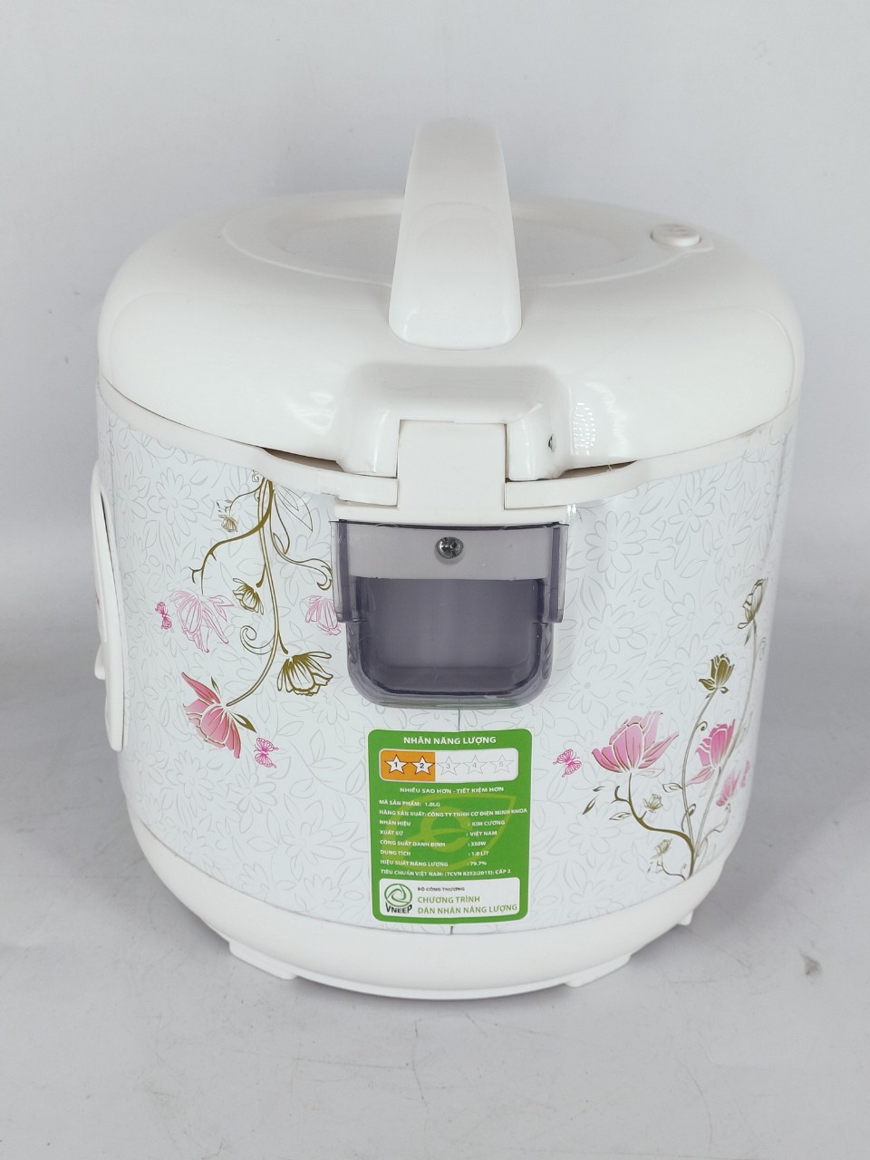 Loại nồi: Nồi cơm cơ Công suất: 700W Dung tích: 1.8L Lòng nồi dày: 2.6 mm Chất liệu lòng nồi/ chảo: Hợp kim nhôm phủ chống dính Whitford (USA) Chức năng nấu: Nấu - Cook"