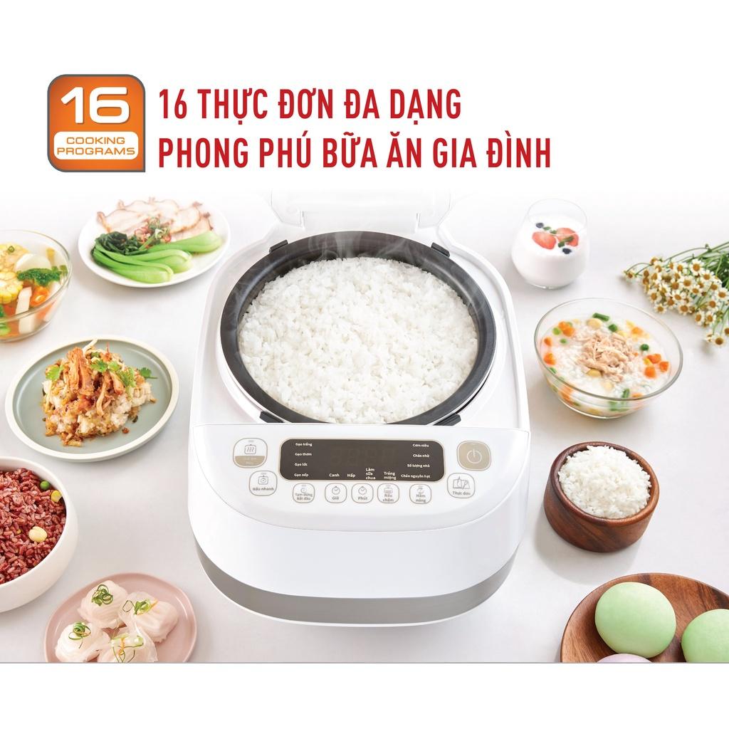 MENU ĐA NĂNG: • Chức năng nấu dinh dưỡng: Qunioa, Steel Cut Oatmeal, Brown, GABA Brown, Steam • Chức năng nấu cơm theo từng loại gạo: Long & Short Grain White, Premium, Congee(Thick & Thin),
