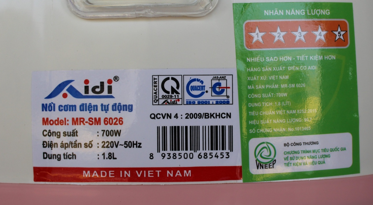 Nồi Cơm Điện Nắp Gài Thân Nhựa Ủ Đa Chiều Aidi MR-SM 6026 (1,8 lít) - Màu Ngẫu Nhiên- Chính Hãng được trang bị một mâm nhiệt lớn cùng công suất nồi 700W giúp nhiệt tỏa đều làm cơm chín đều, mềm và ngon hơn.Dung tích 1,8L phù hợp với gia đình 4-6 người.