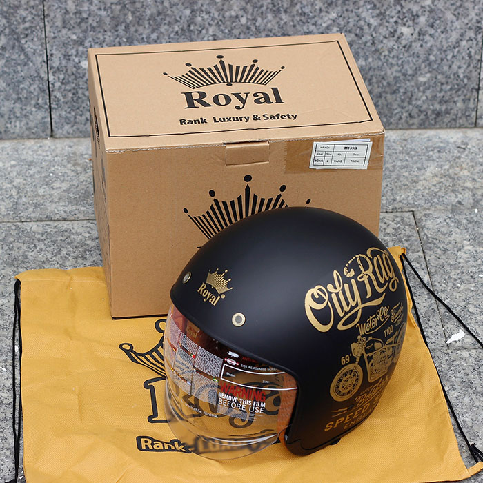 Thông tin chi tiết: Thương hiệu: Royal (Mafa VN sản xuất) Model: M139 Luxury Loại: 3/4 đầu, có kính âm giảm UV Kính: Kính âm nhỏ màu trà khói, chống tia UV, bụi, gió. Mái