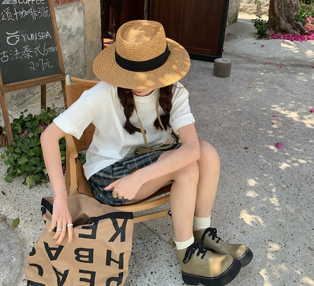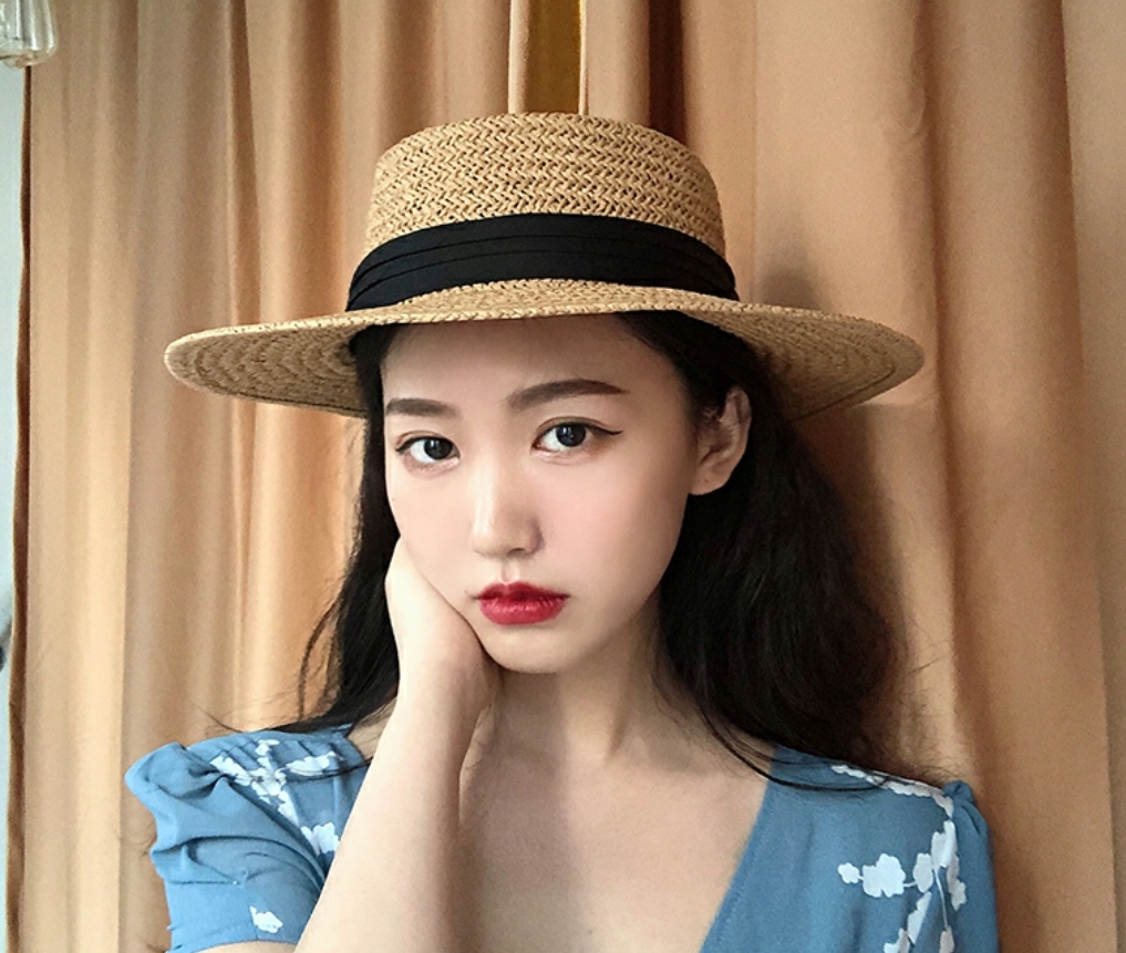 Mũ cói rơm vành phẳng nữ mùa hè phiên bản Hàn Quốc chống nắng UV cho kỳ nghỉ Nón đi biển Paris thời trang hàng đầu Pháp Chất liệu cói