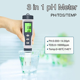 3 in 1 Digital PH Meter with TDS/Temp Meter, TDS Water Tester ±0.05 PH High Accuracy with 0-14 PH Measurement Range for Drinking Water, Swimming Pool, Aquarium, Hydroponics