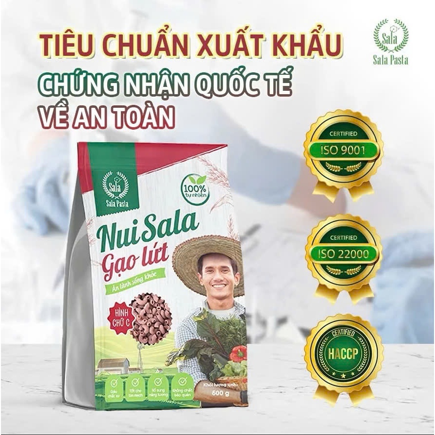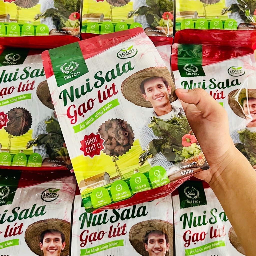 • Nui Sala gạo lứt hình chữ C túi zip được làm từ nguyên liệu gạo lứt tự nhiên phù hợp với người ăn giữ dáng hoặc chế độ ăn gạo lứt healthy, giúp tăng cường sức khỏe.
